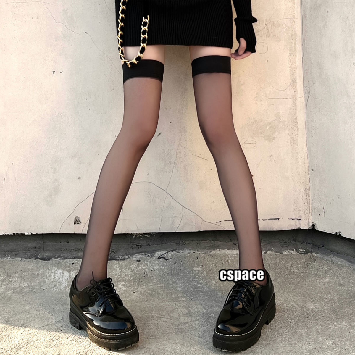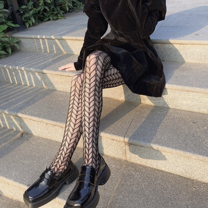 • 블랙 중공 무릎 양말 [섹시 블랙]]