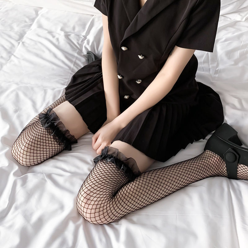 • 검은색 가장자리 긴 망사 스타킹