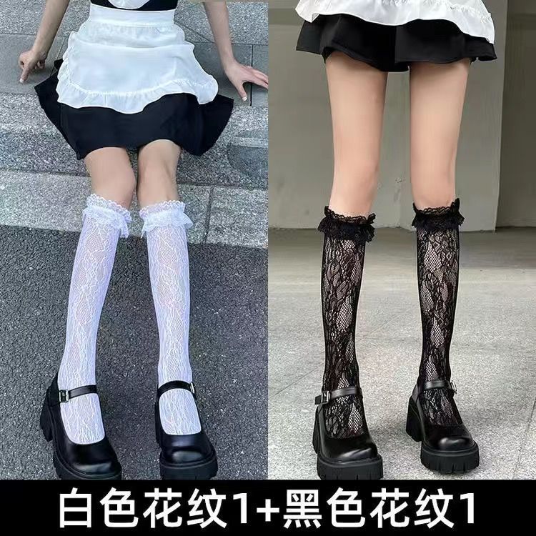 여성용 롱 레이스 양말, 여름 로리타 레이스 무릎 위 양말, 귀여운 jk 허벅지 양말, lo 하이 양말, 아름다운 다리 양말스토어 가기
