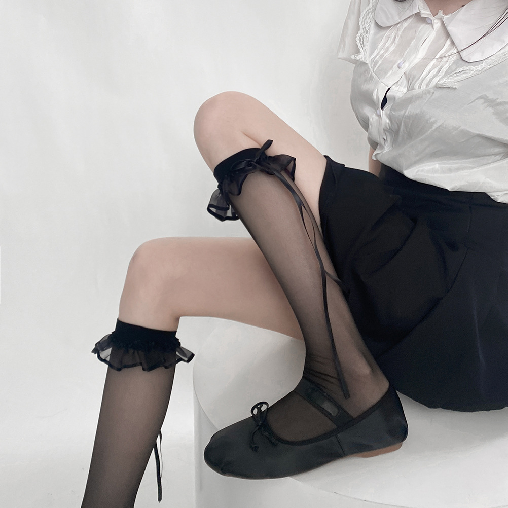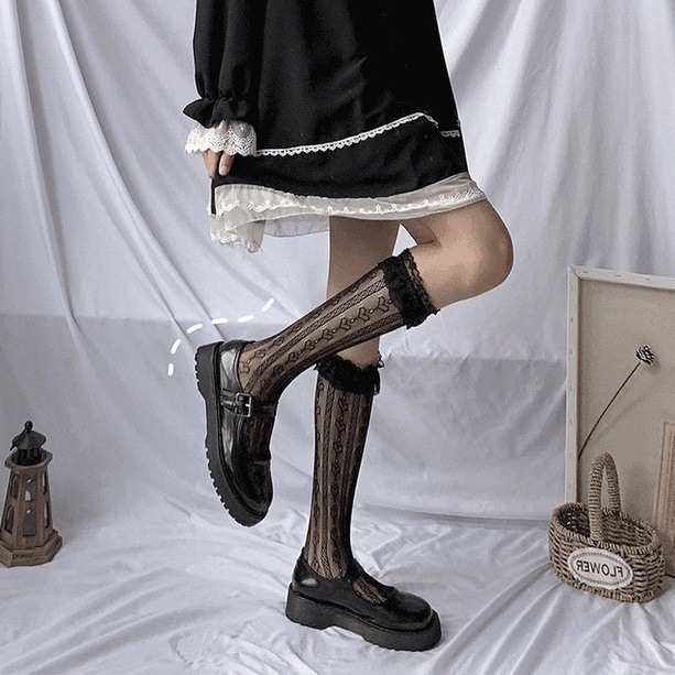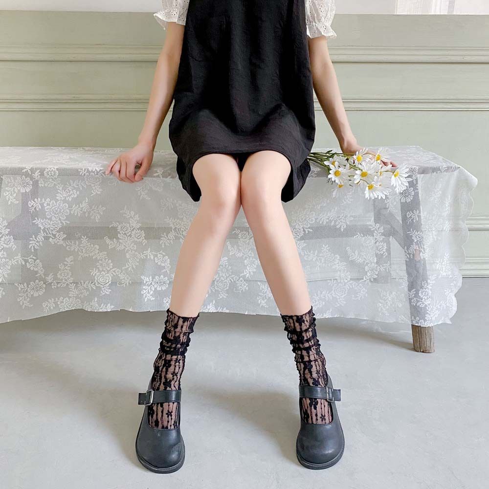 • 블랙 레이스 미드 튜브 양말