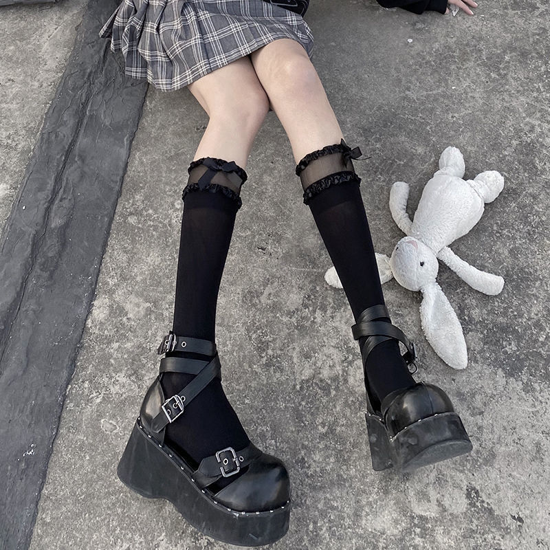 여성용 롱 레이스 양말, 여름 로리타 레이스 무릎 위 양말, 귀여운 jk 허벅지 양말, lo 하이 양말, 아름다운 다리 양말