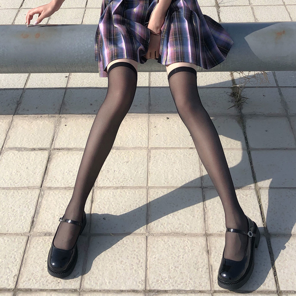 • 수직 라인 폐쇄 크로 치 스타킹 블랙