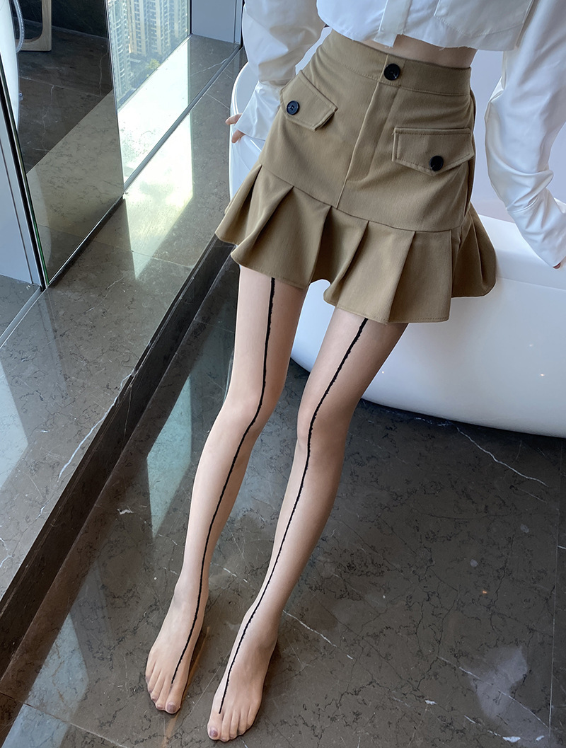 • 수직 라인 폐쇄 가랑이 스타킹 피부색