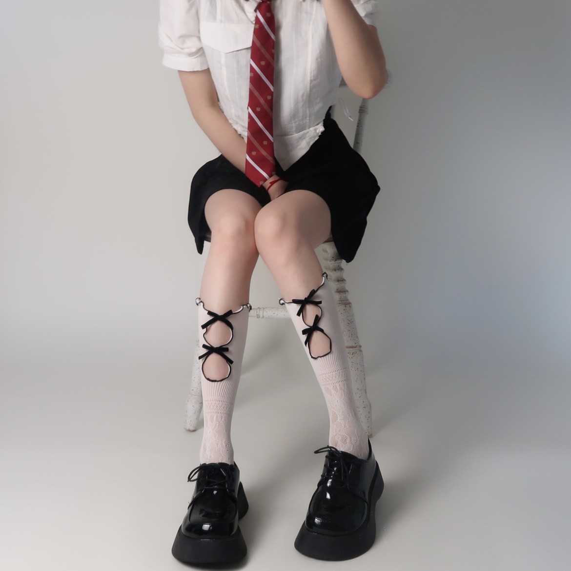 • 나비 매듭 스타킹 화이트