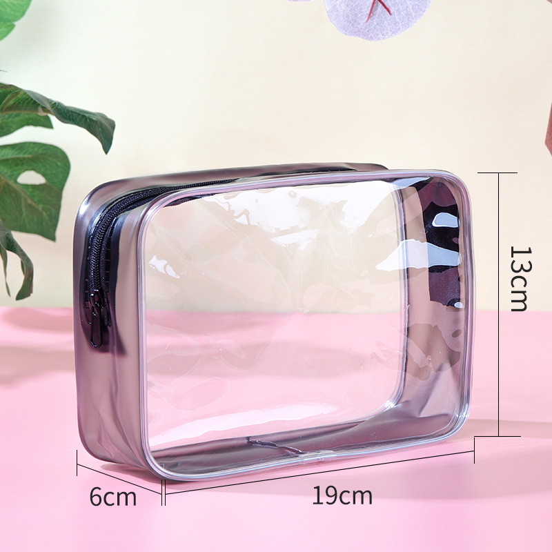 PVC 투명 블랙 사이드 백 전염병 예방 가방 지퍼 화장품 가방 간단한 여행 세척 가방 대용량 보관 가방