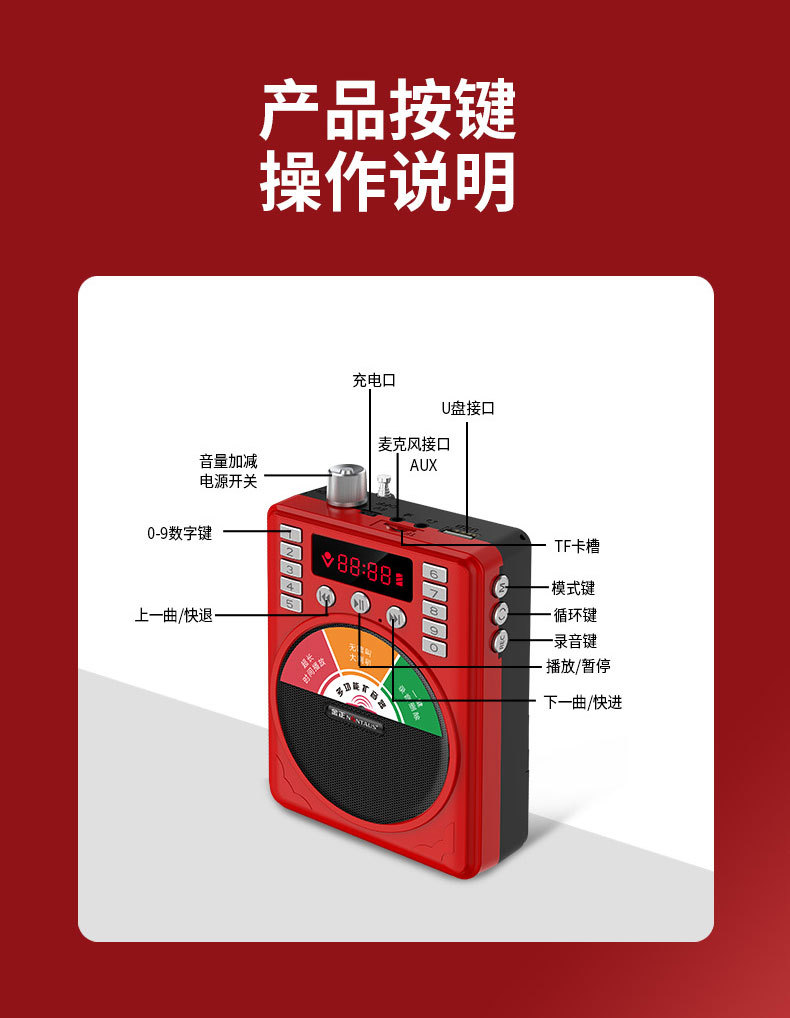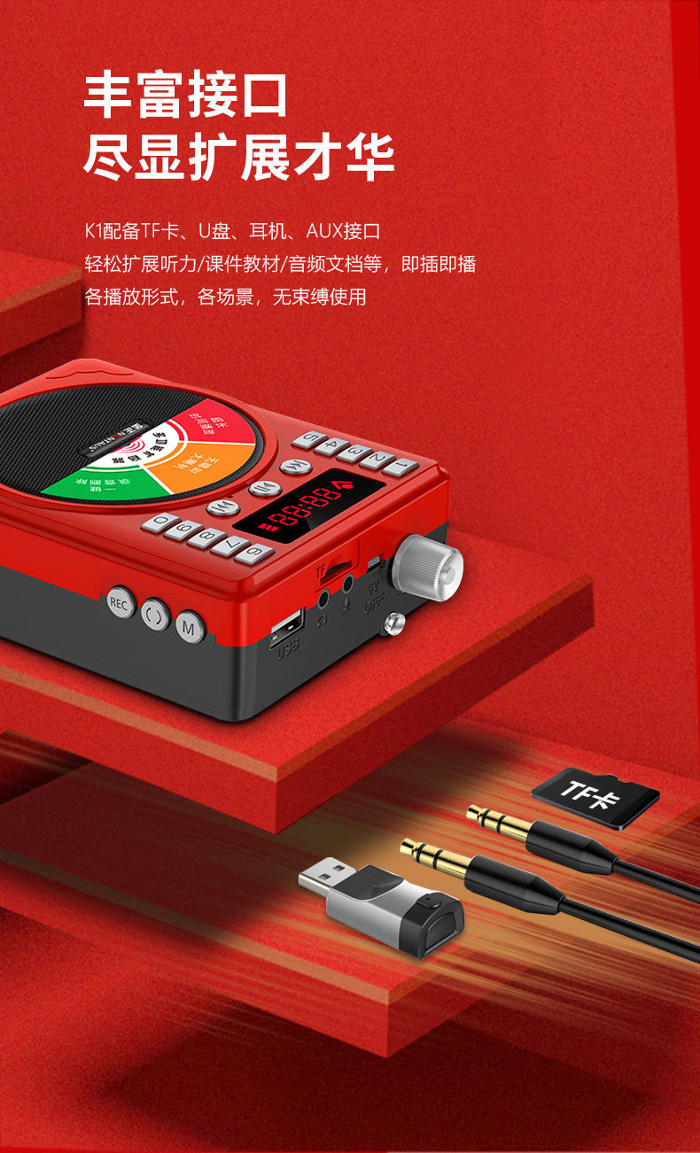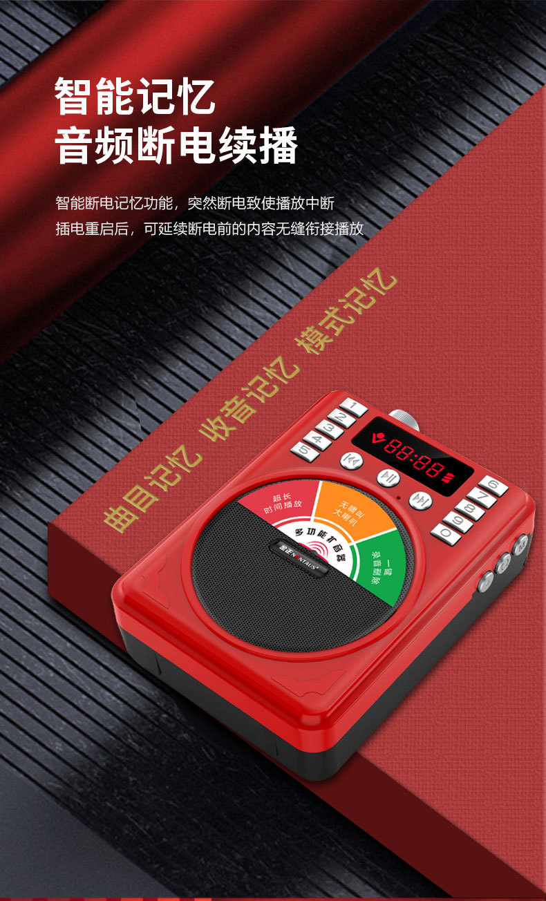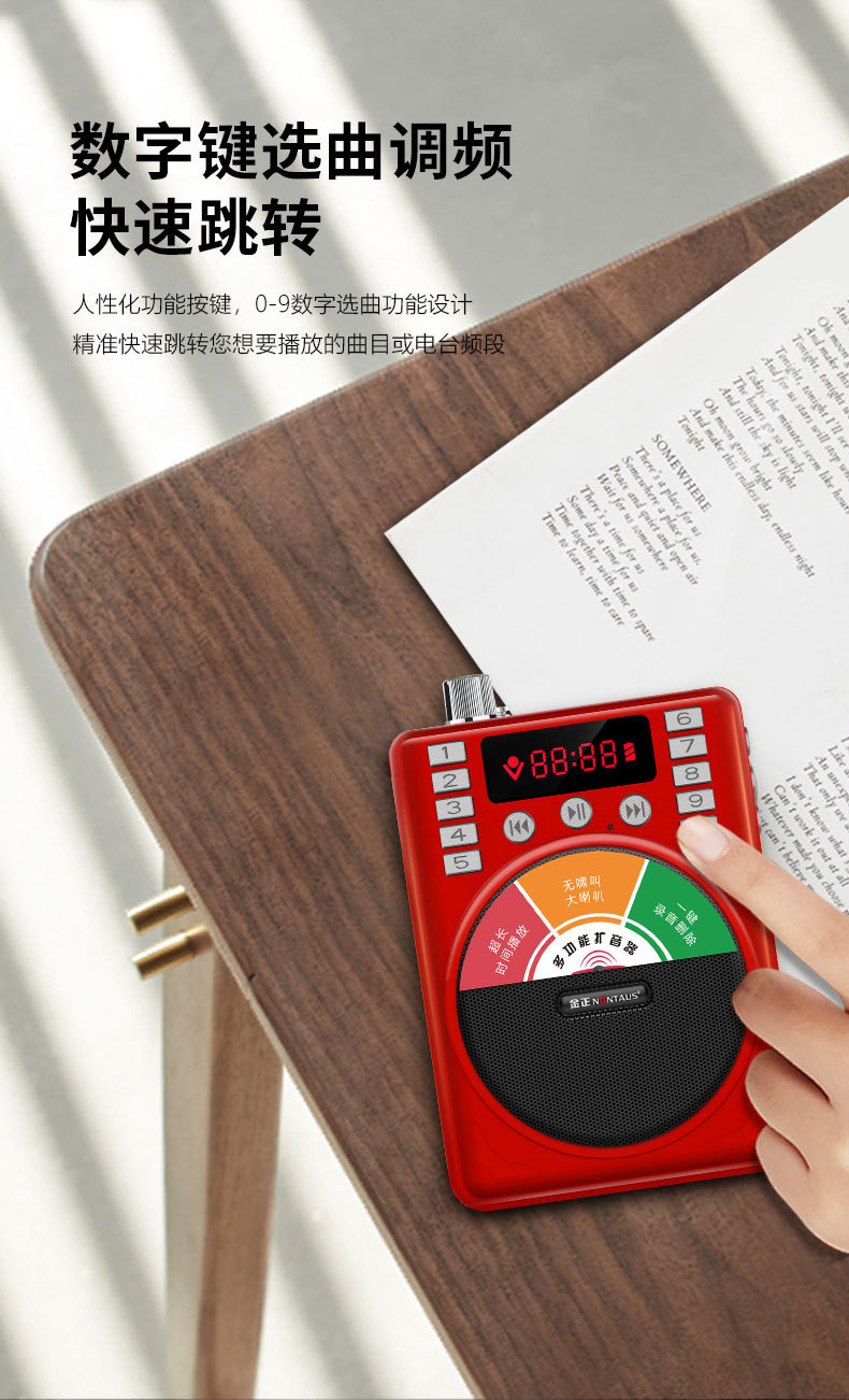 Jin Zheng K1 노인용 라디오 카드 스피커 휴대용 MP3 미니 스테레오 음악 플레이어