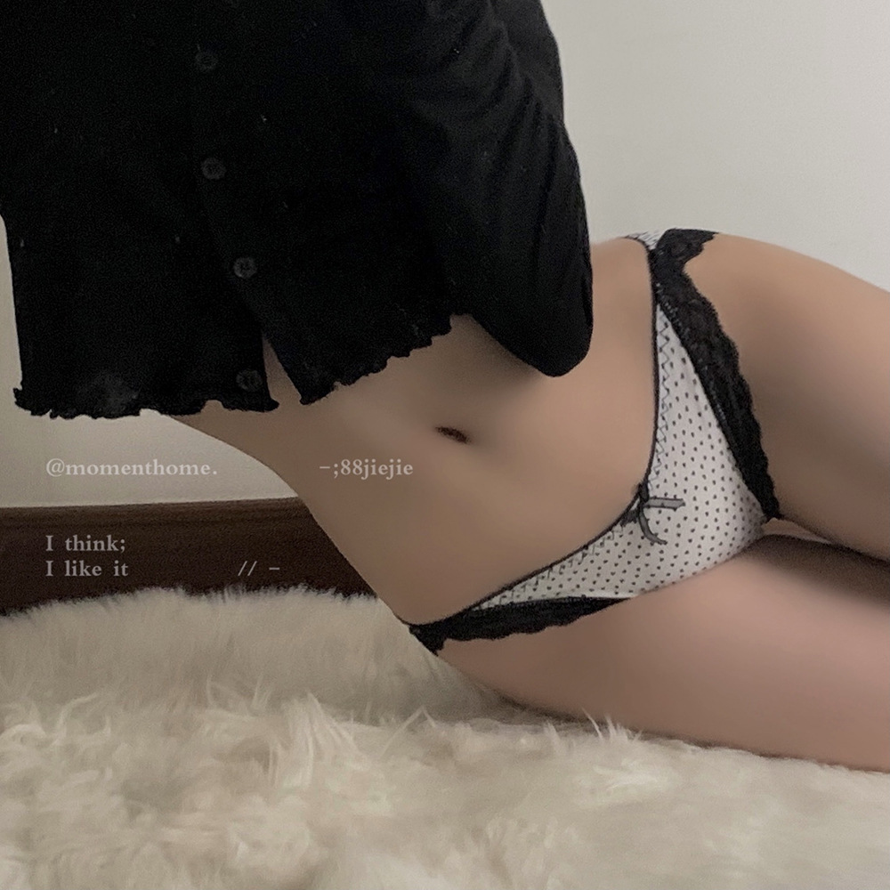 첫사랑 소녀 맛 * 달콤한 일본식 간단한 낮은 허리 물방울 무늬 스티치 레이스 가장자리 편안한 사랑 인쇄 브리프