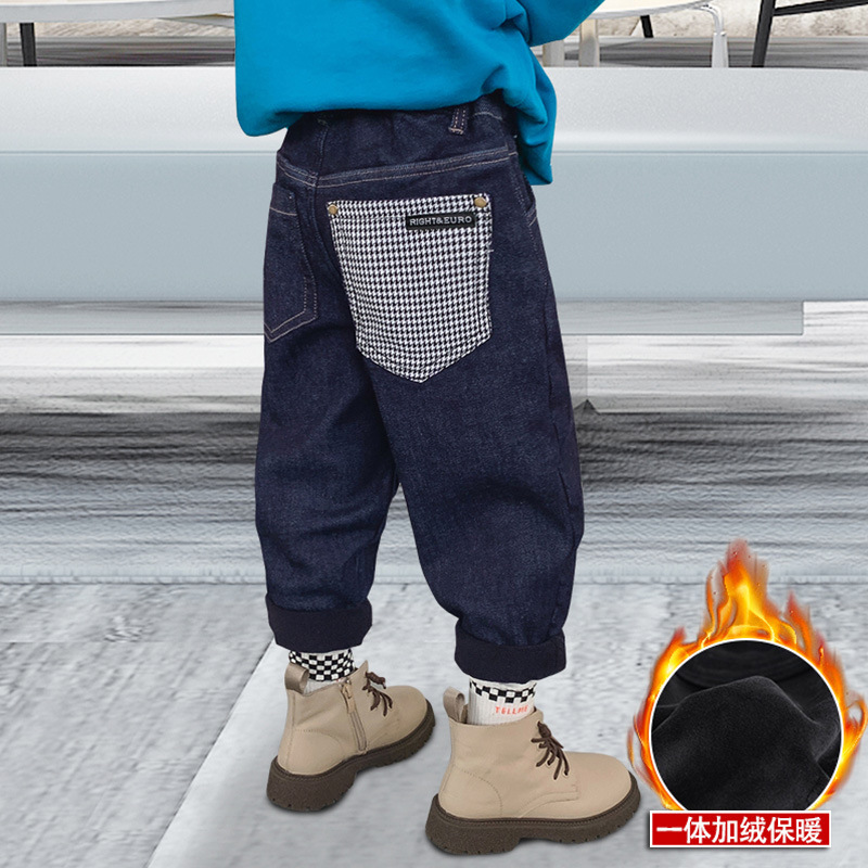 남아 청바지 2023 봄 가을 신상품 대형 아동 바지 가을과 겨울 한국 스타일 원피스 벨벳 루즈한 캐주얼 팬츠스토어 가기