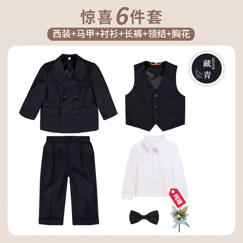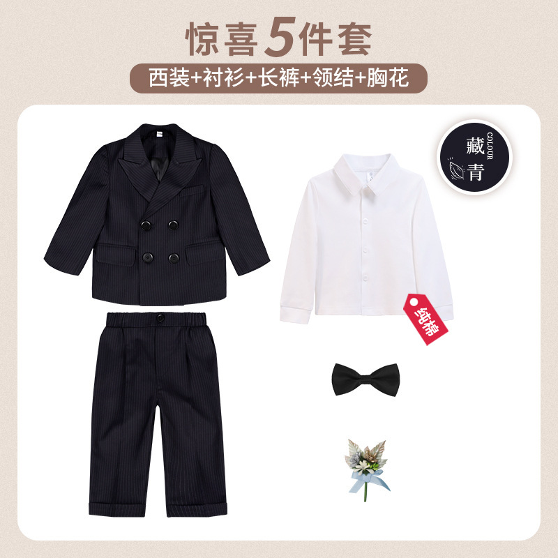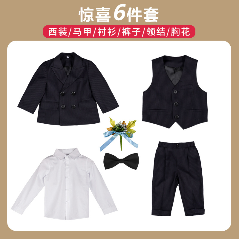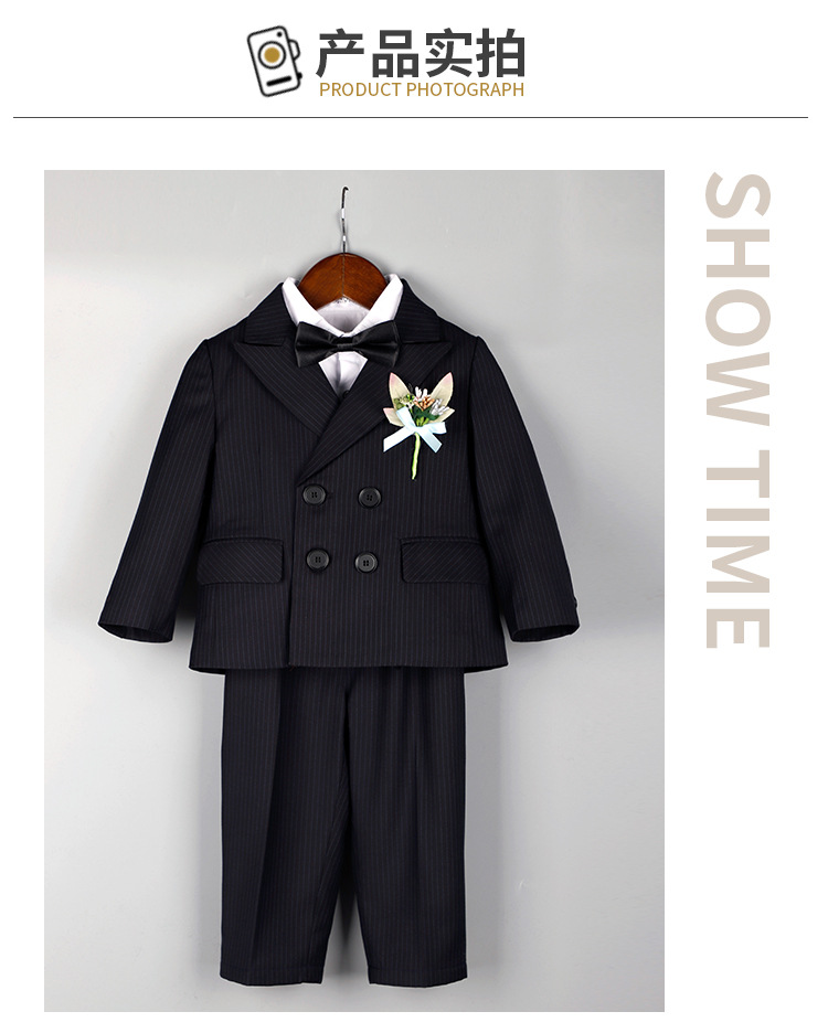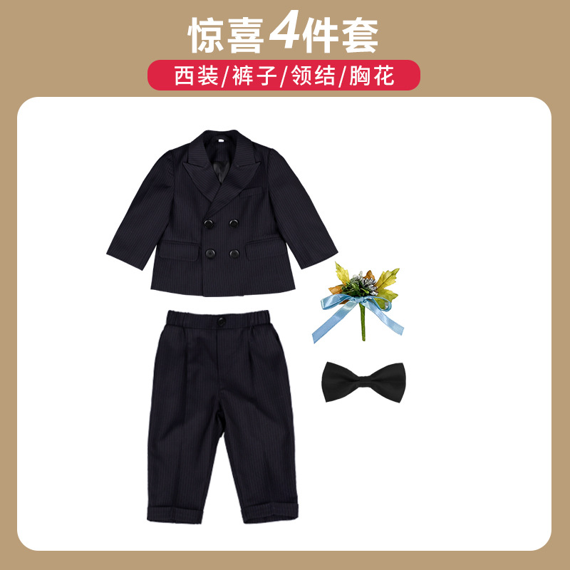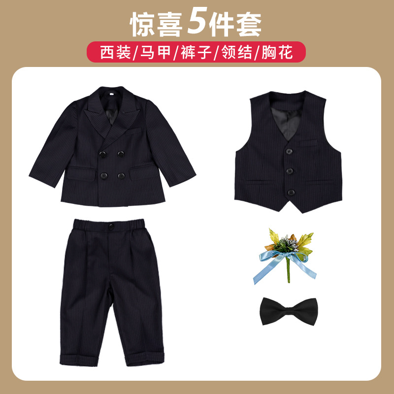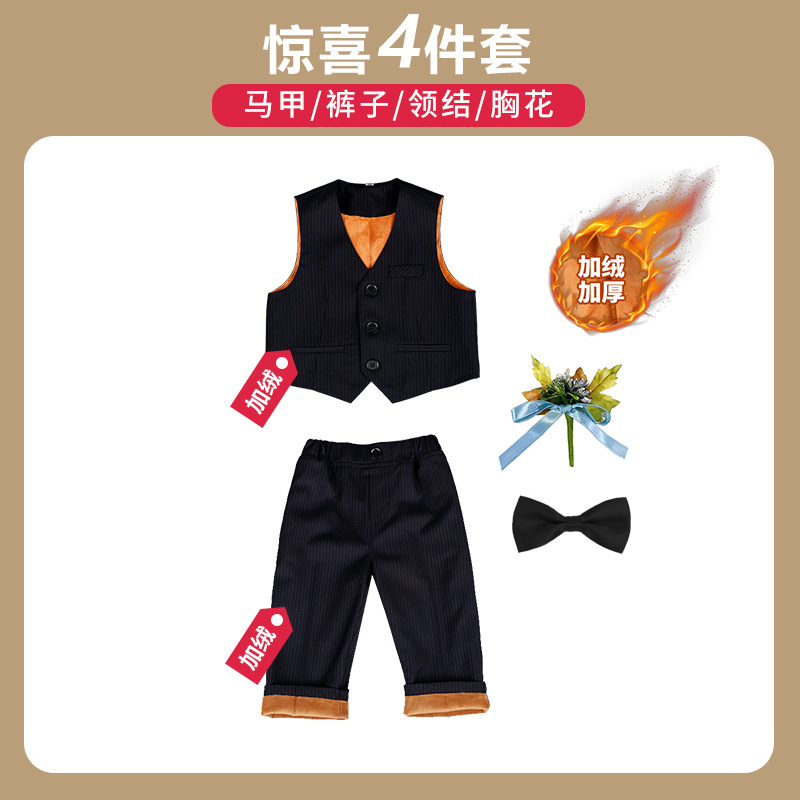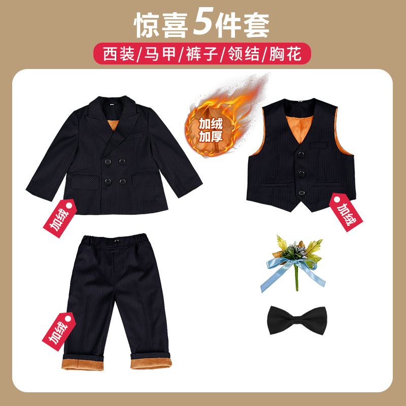 어린이 정장 3피스 세트, 유아 가을 겨울 남아 예복, 줄무늬 아기 돌잔치 웨딩 화동 촬영용, 보온 기능 추가스토어 가기