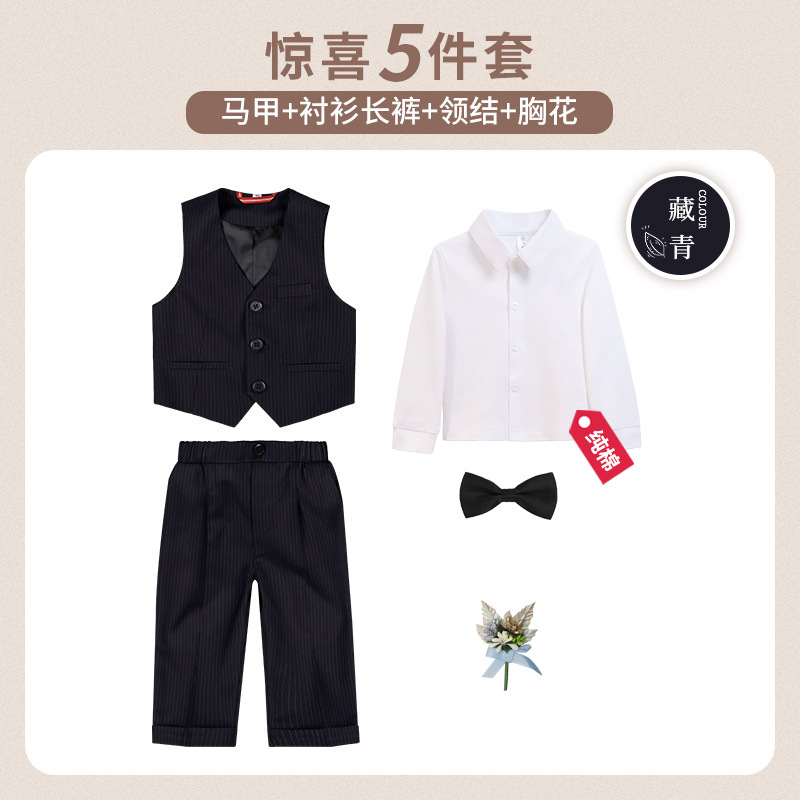 • [순면 셔츠] 조끼 + 바지 + 82176 셔츠 + 나비넥타이 + 코사지