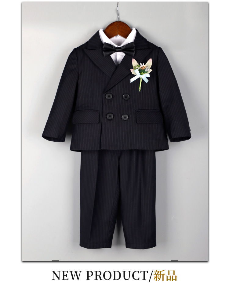 어린이 정장 3피스 세트, 유아 가을 겨울 남아 예복, 줄무늬 아기 돌잔치 웨딩 화동 촬영용, 보온 기능 추가