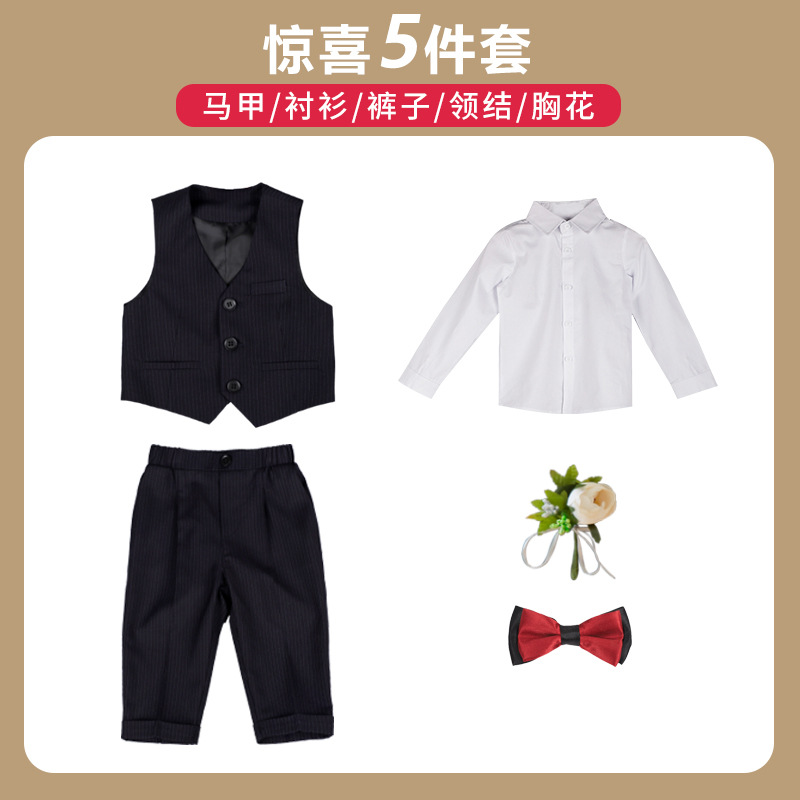 • 조끼 + 바지 + 셔츠 + 나비 넥타이 + 코사지