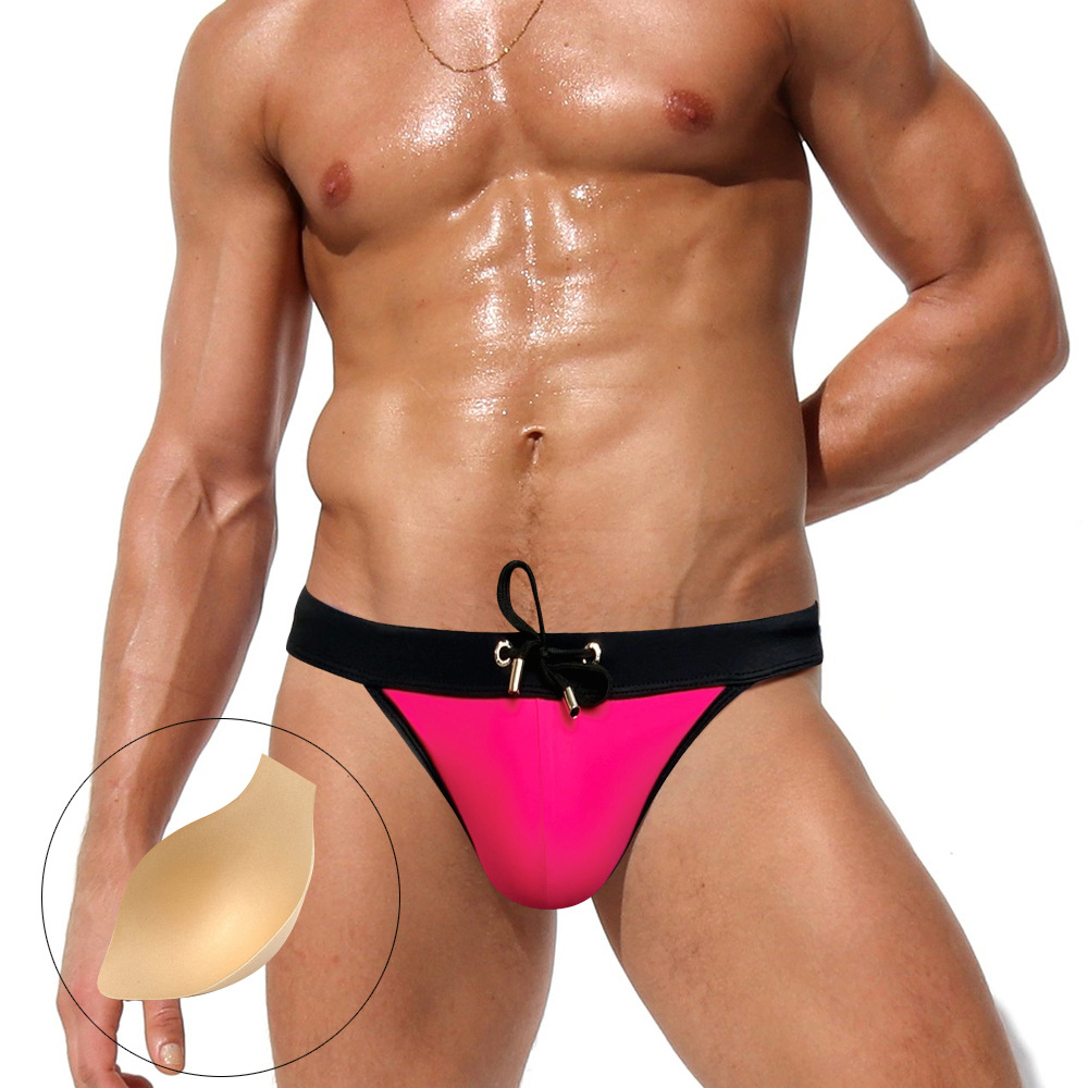 JESSBORN 하이 포크 남성용 수영 트렁크 패션 섹시한 삼각형 수영 트렁크 컵 안티 워킹 꽉 유럽과 미국 유행 수영복스토어 가기