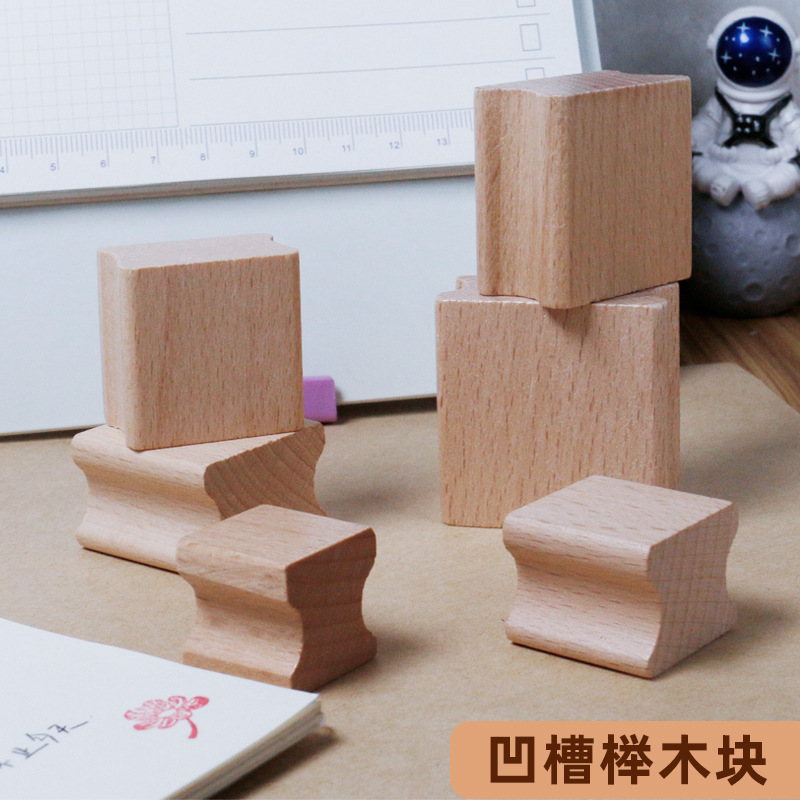 공장 도매 그루브 나무 블록 조각 레이저 재료 단단한 나무 너도밤 나무 스프레이 페인트 나무 인감 창조적 인 공예스토어 가기