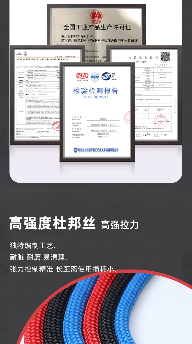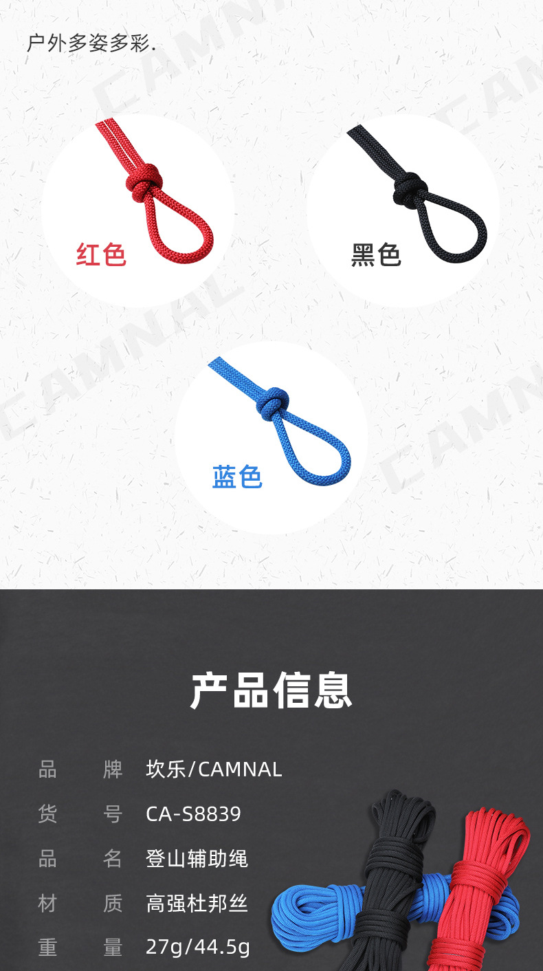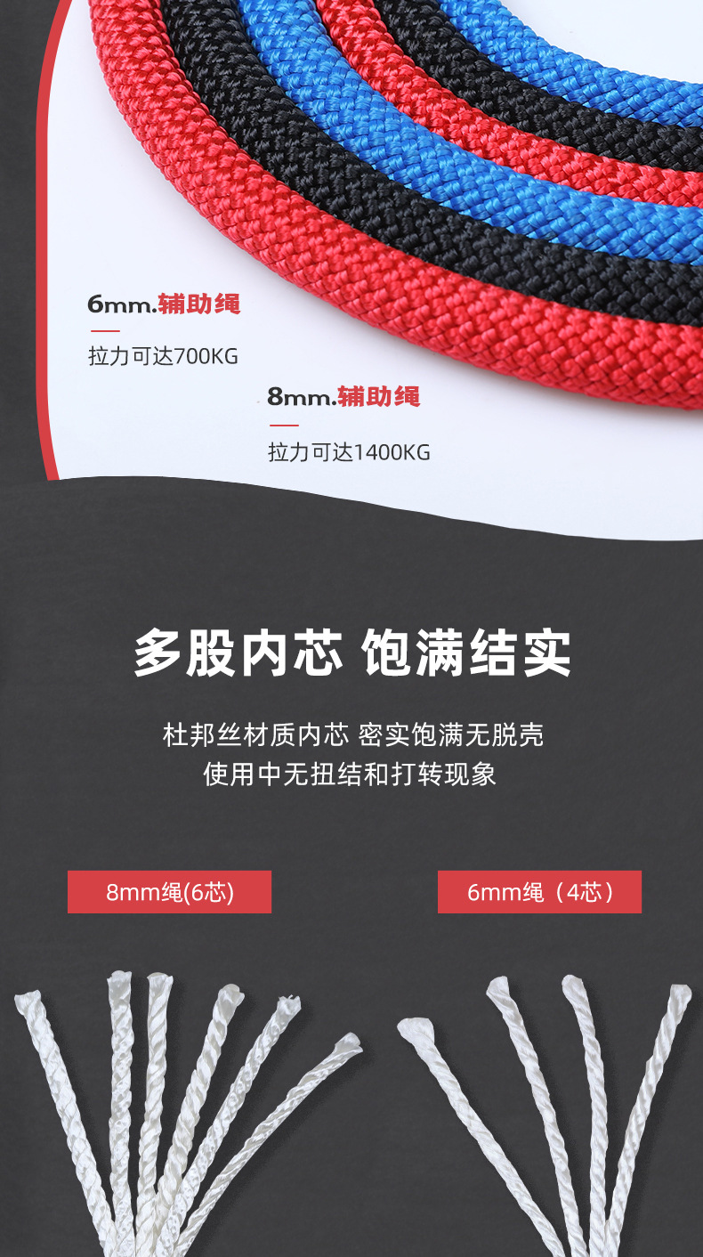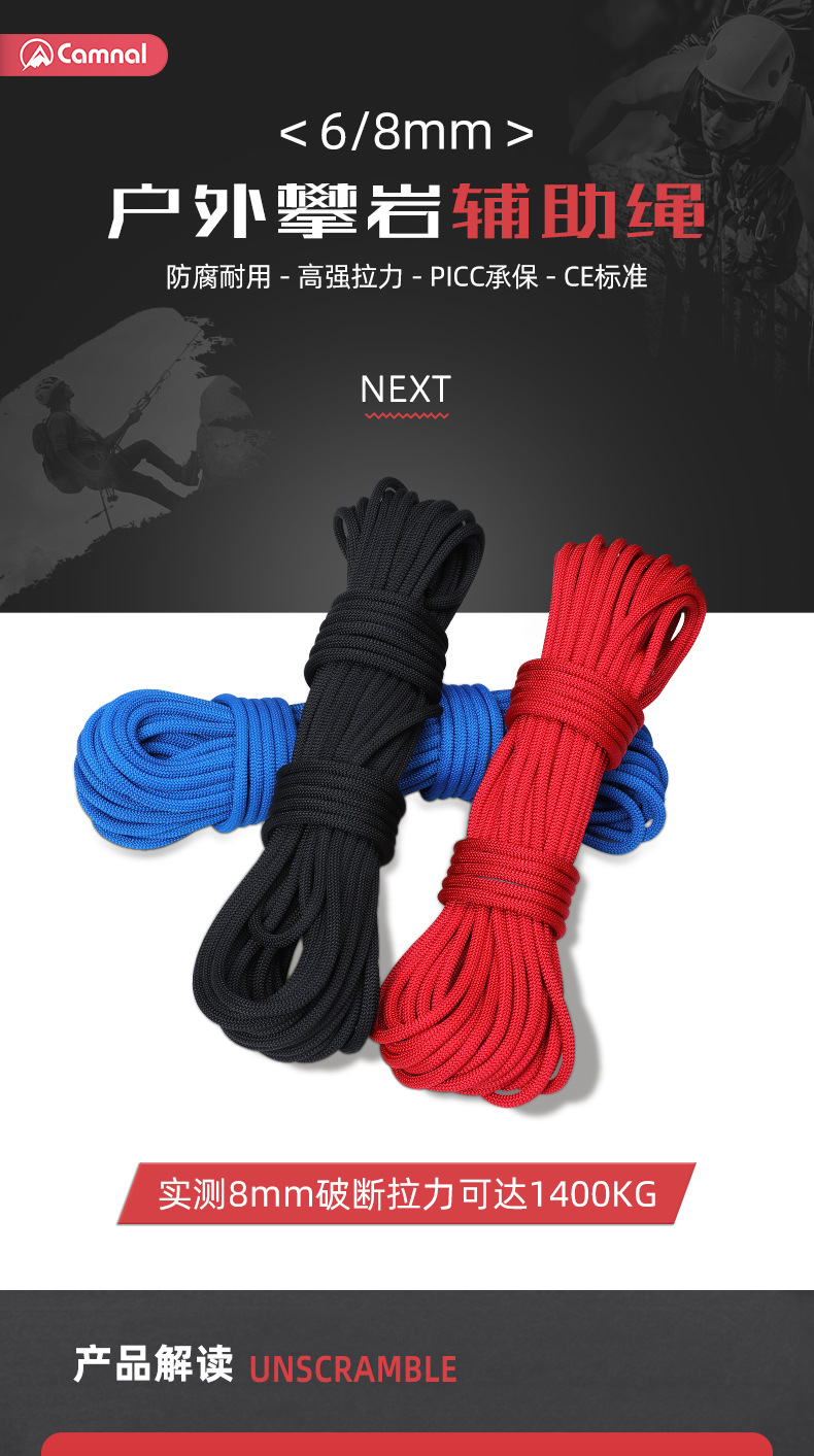 칸레 야외 등산 보조 로프 암벽 등반 장비 라펠링 구조 구명 로프 안전 로프 정적 로프 내마모성