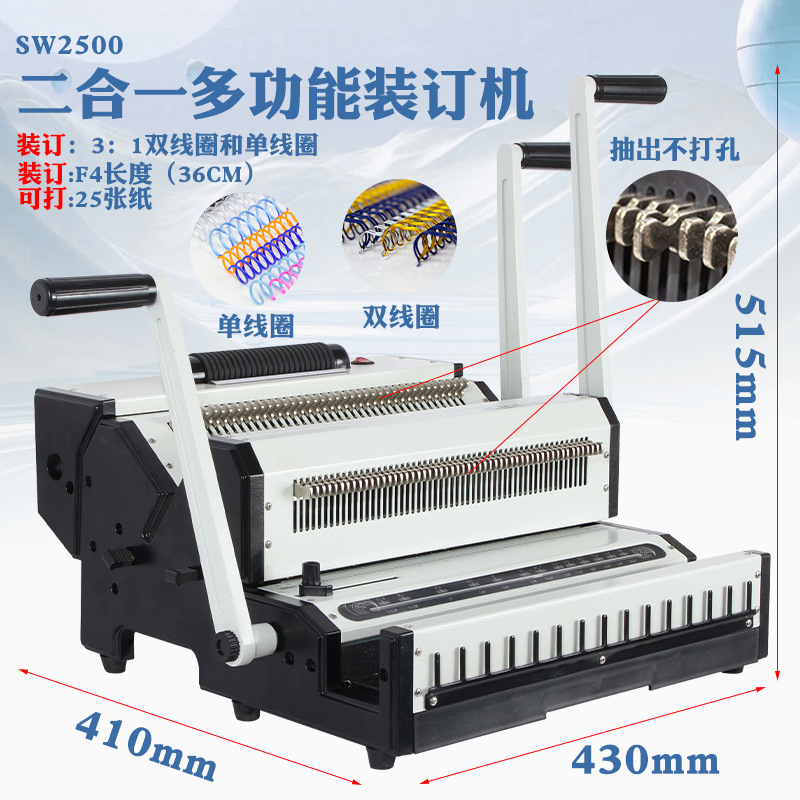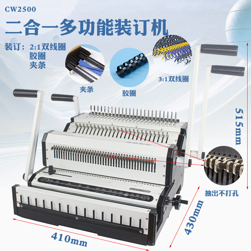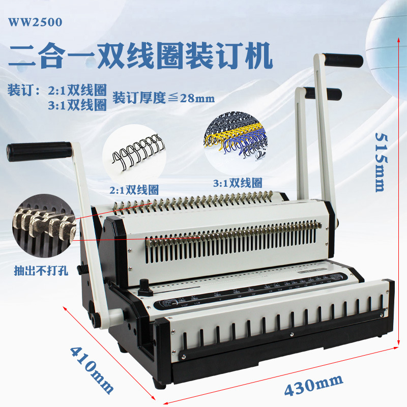 WW2500 제본기 고무링 철링 클립 범용형 3:1 천공기 문서 제본기 고무링 제본