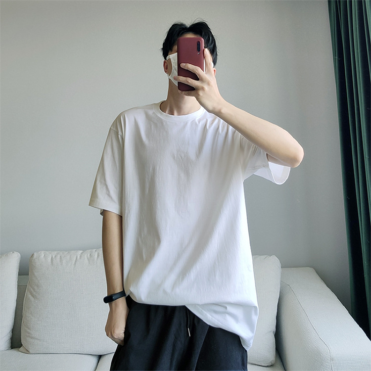 2025 여름 헤비급 퓨어 코튼 솔리드 컬러 퓨어 화이트 다목적 루즈 이너 반팔 반팔 티셔츠 남성용 보텀 탑 트렌디스토어 가기