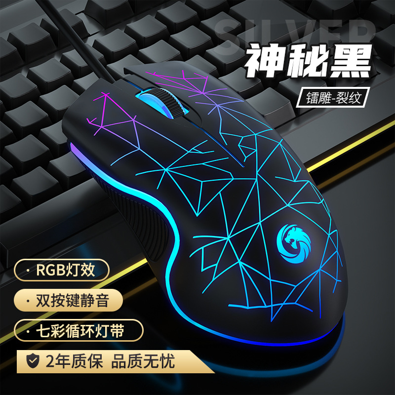 炫虎鼠标有线发光静音无声电脑笔记本台式家用办公男女生电竞游戏