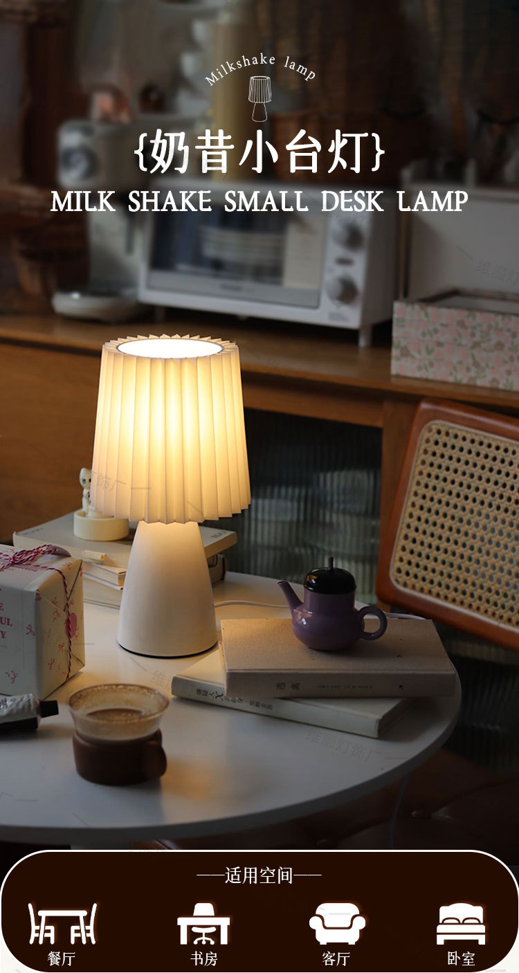 플리츠 밀크셰이크 테이블 램프 북유럽 스타일 럭셔리 디자인 침실 침대 옆 야간등 심플하고 따뜻한 분위기 조명 장식용 테이블 램프