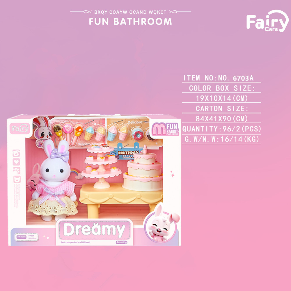 작은 토끼 장면 놀이 장난감 시뮬레이션 드레싱 테이블 훈련 수업 선물 케이크 소녀 생일 선물 크로스 보더