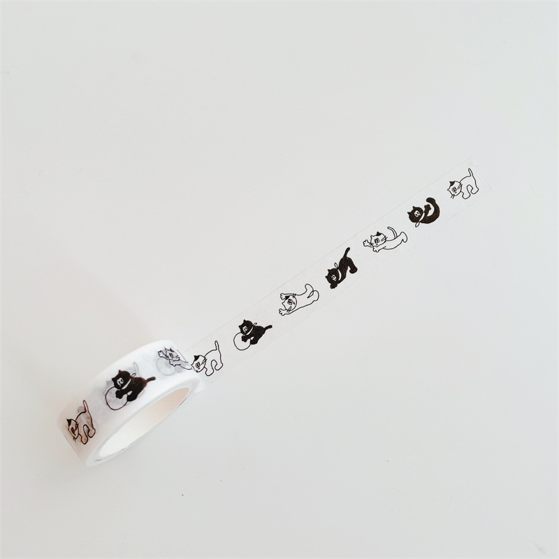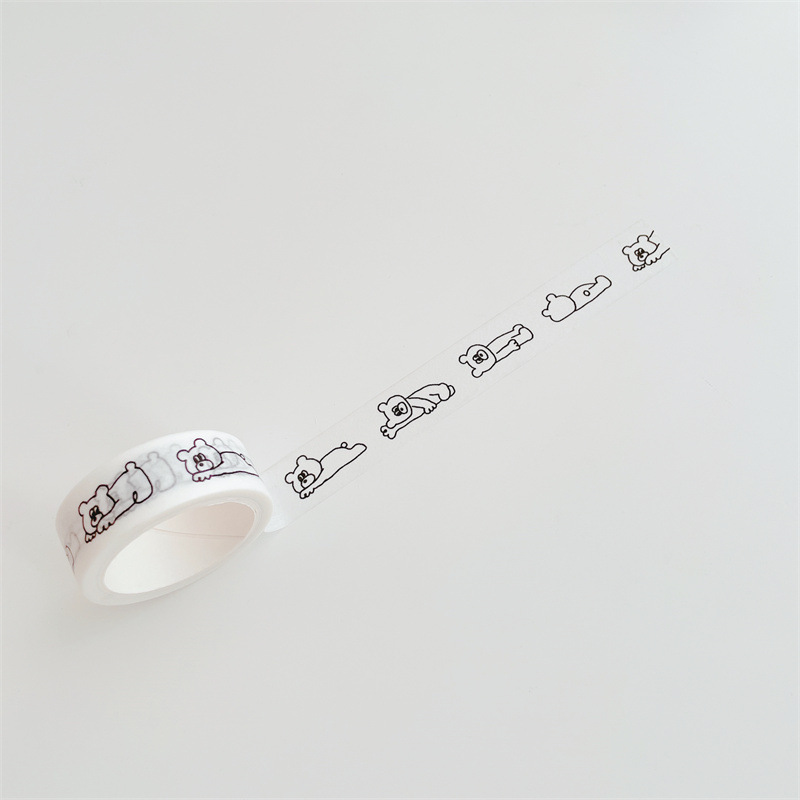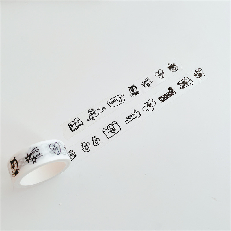 [5 m] 한국 인 및 종이 테이프 흑백 스틱 그림 곰 고양이 손 계정 자료 스티커 테이프