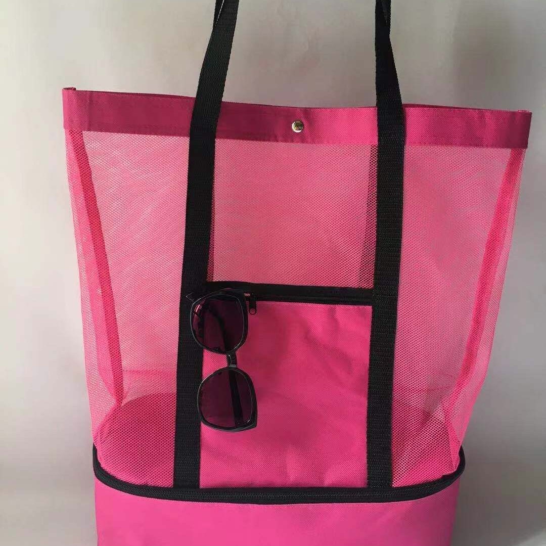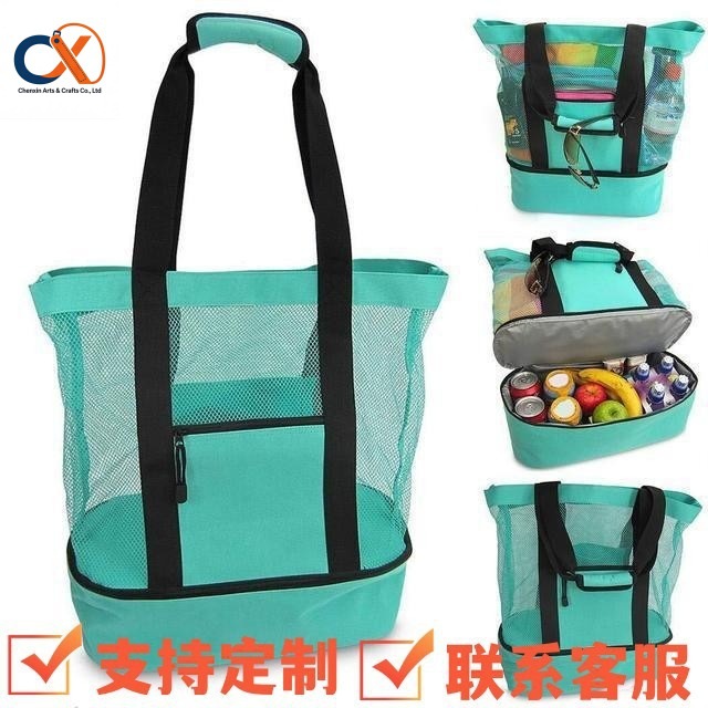 新款厂家直销单肩双层野餐包保温冰袋手提网格袋旅行沙滩包野餐袋