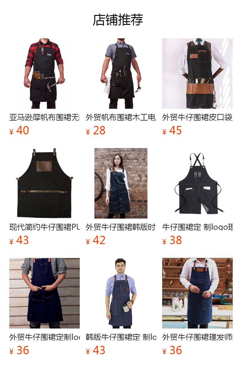 대외 무역 데님 앞치마 사용자 정의 로고 바베큐 커피 숍 원예 이발사 주방 작업 옷 앞치마 도매스토어 가기