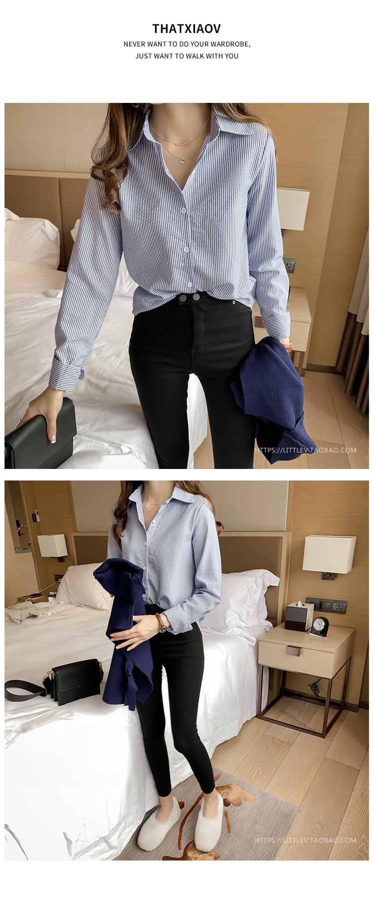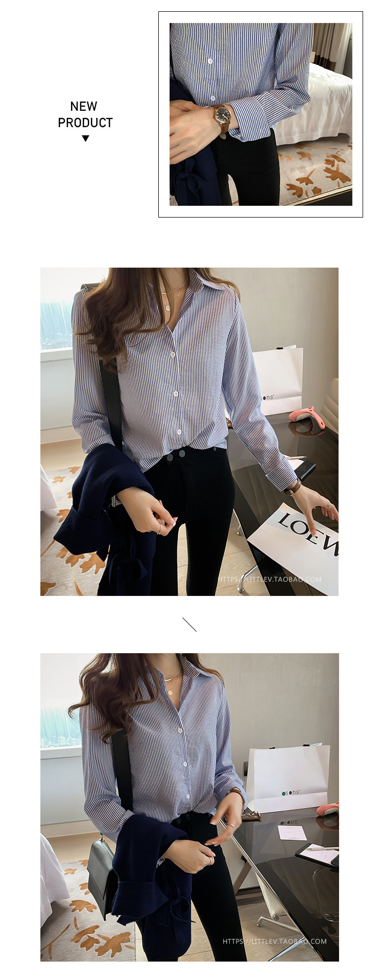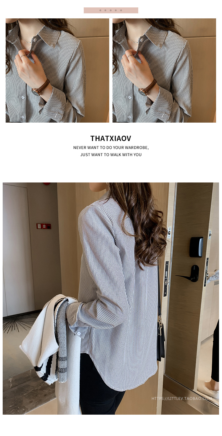 2026 봄 신상 시크한 빅사이즈 세로 스트라이프 셔츠 여성 루즈핏 한국 스타일 긴팔 셔츠 트렌디스토어 가기