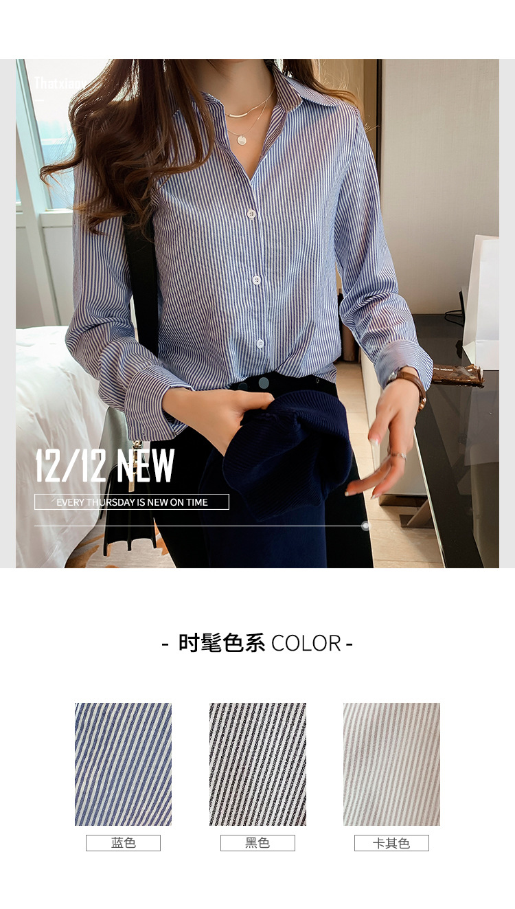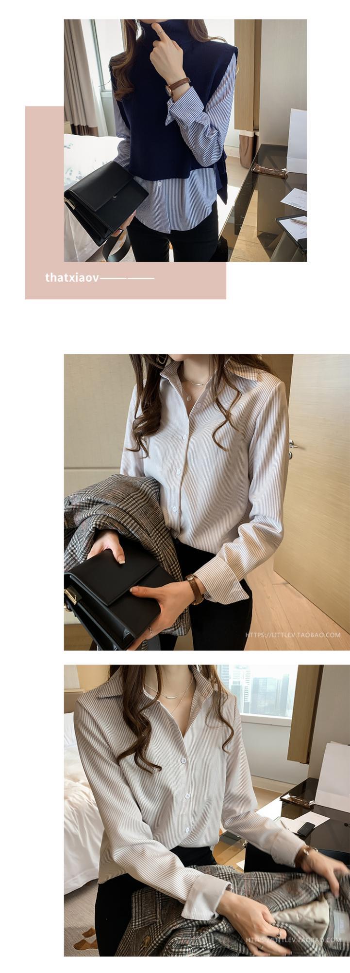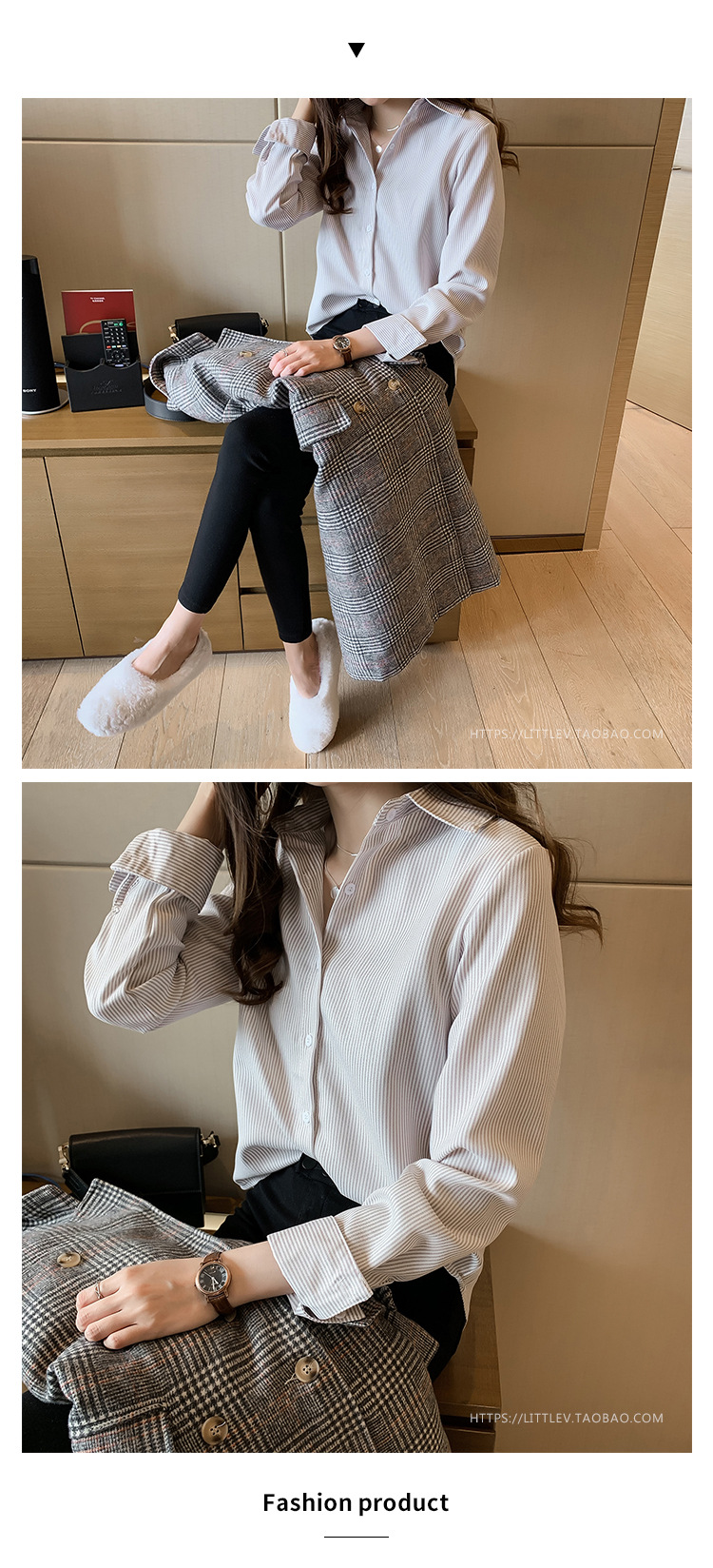 2026 봄 신상 시크한 빅사이즈 세로 스트라이프 셔츠 여성 루즈핏 한국 스타일 긴팔 셔츠 트렌디스토어 가기