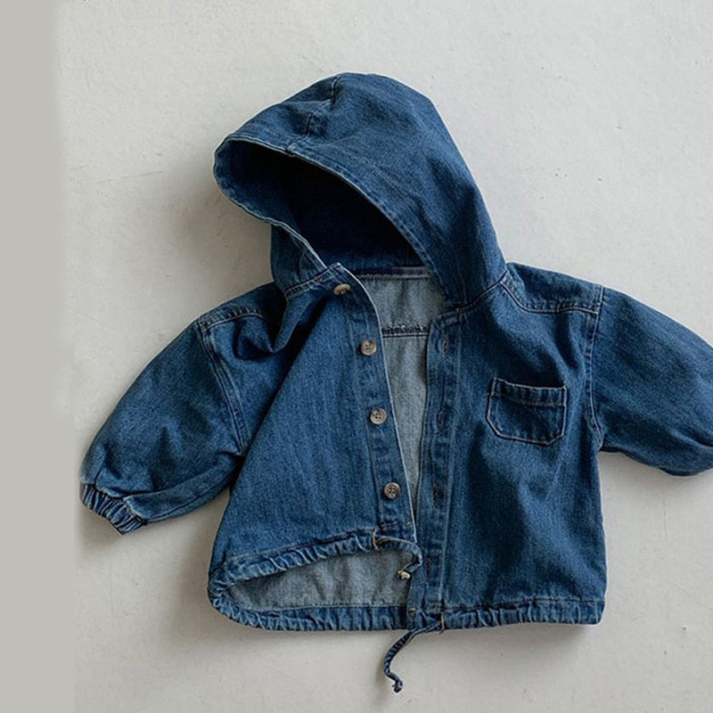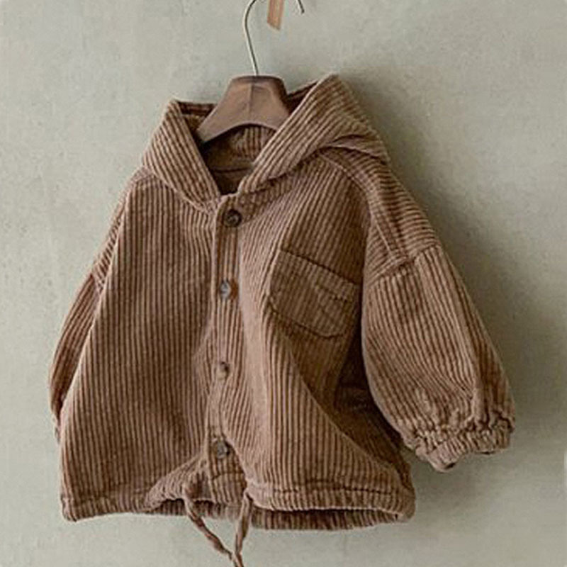 한국 스타일 어린이 아기 봄과 가을 새 카디건 세련된 후드 데님 코듀로이 캐주얼 재킷