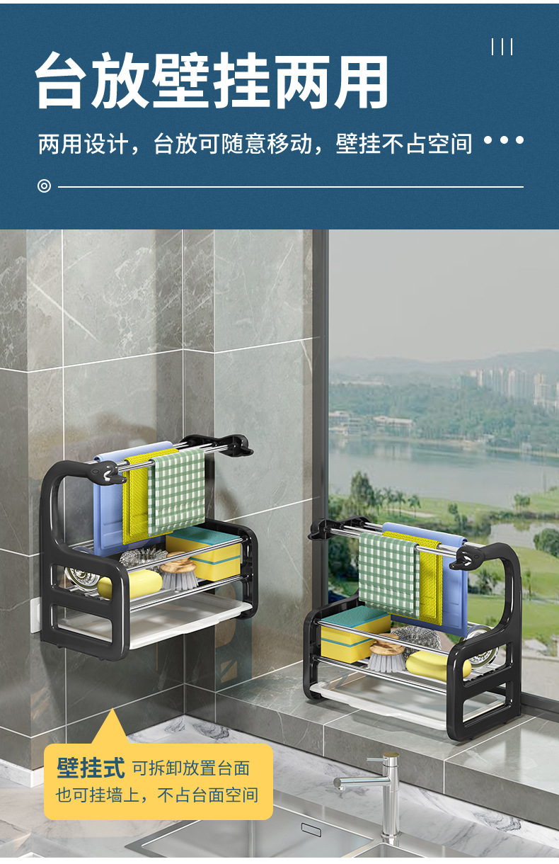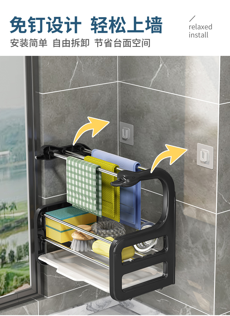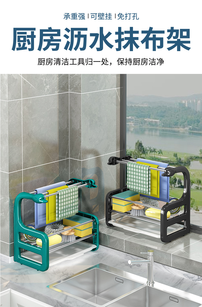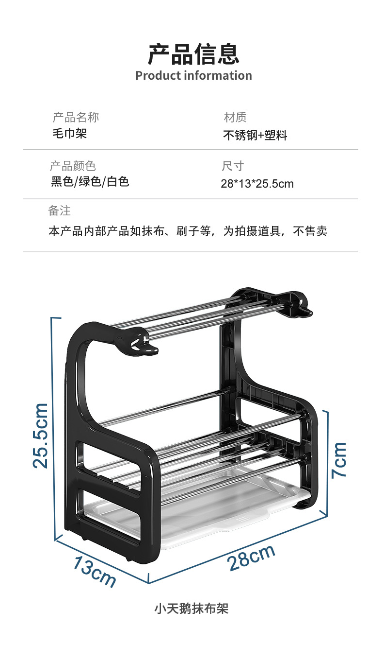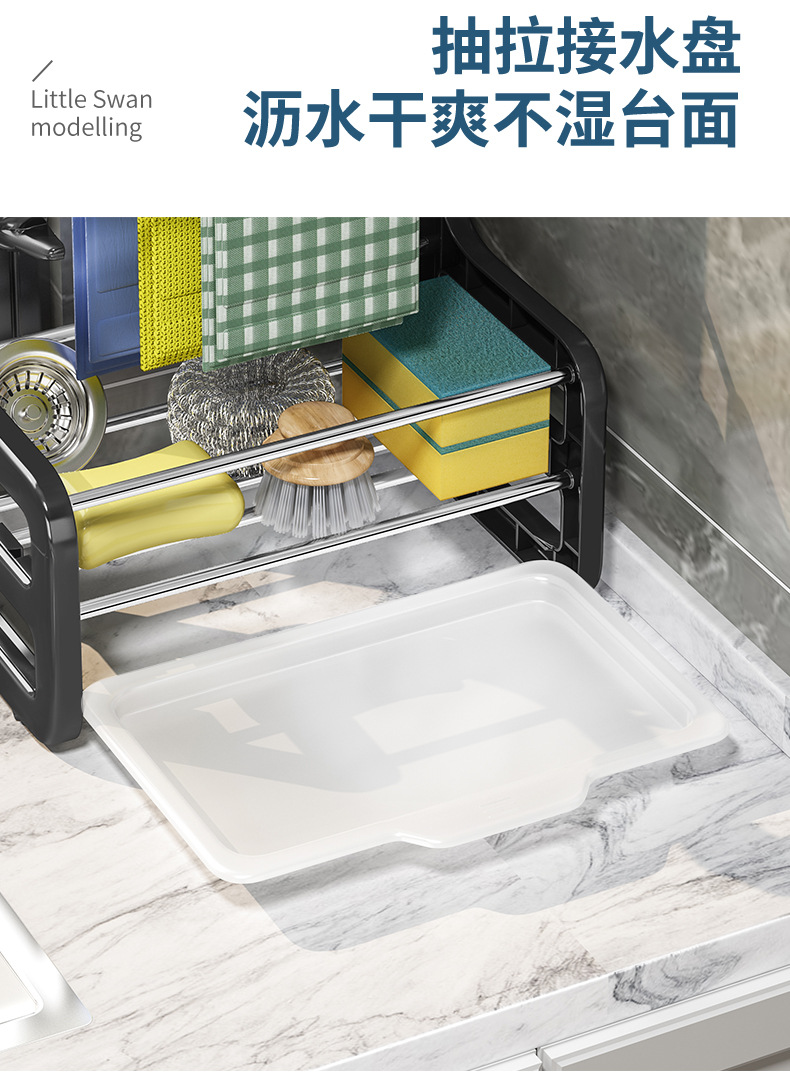 새로운 작은 백조 랙 주방 랙 비 천공 조리대 벽걸이 형 스폰지 배수구 흰색 천 보관 랙