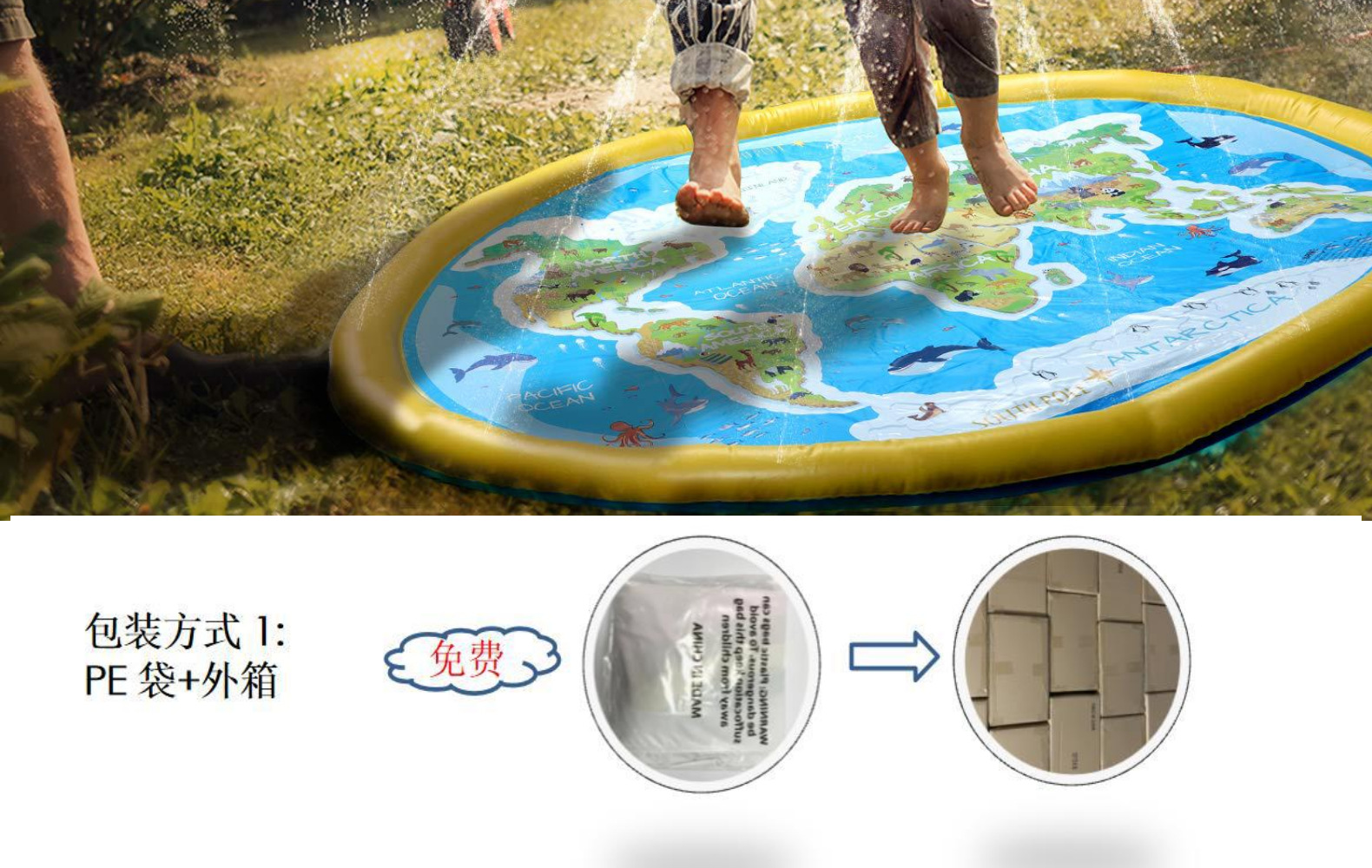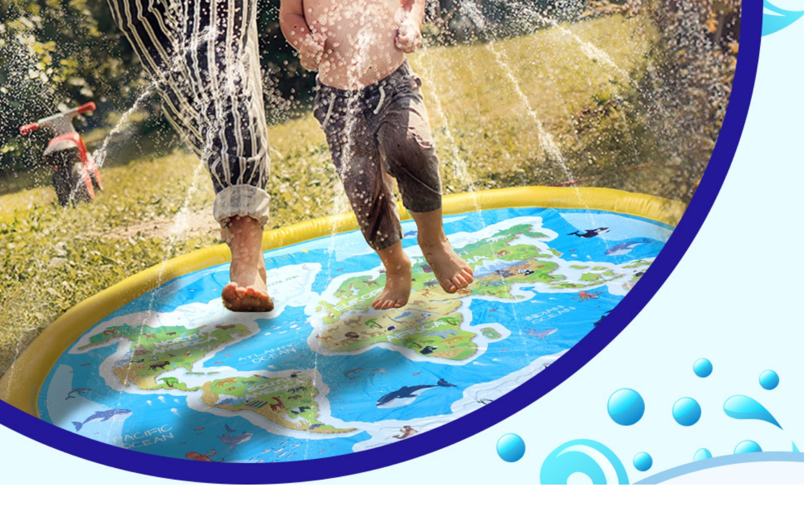 풍선 세계 패턴 동물 스플래시 놀이 매트 야외 수영장 스플래시 매트 어린이 물 스프레이 장난감 물놀이 수영장