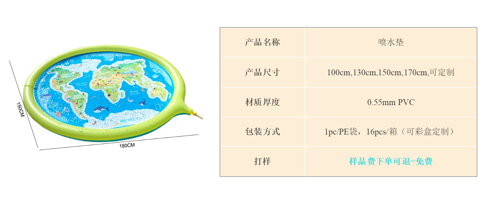 풍선 세계 패턴 동물 스플래시 놀이 매트 야외 수영장 스플래시 매트 어린이 물 스프레이 장난감 물놀이 수영장스토어 가기