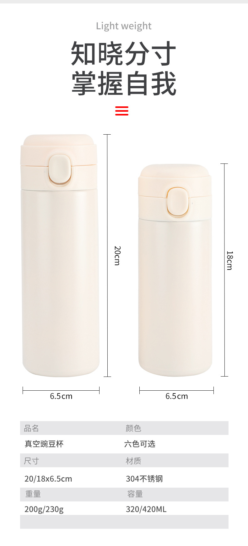 심플한 인스 스타일 304 스테인리스 완두콩 컵 소용량 보온병 뚜껑이 있는 남녀 학생용 점프 뚜껑 컵 도매스토어 가기