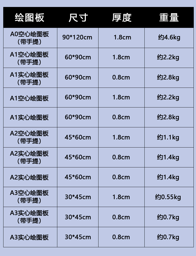 • A2 중공 휴대용 드로잉 보드(두께 1.8cm)