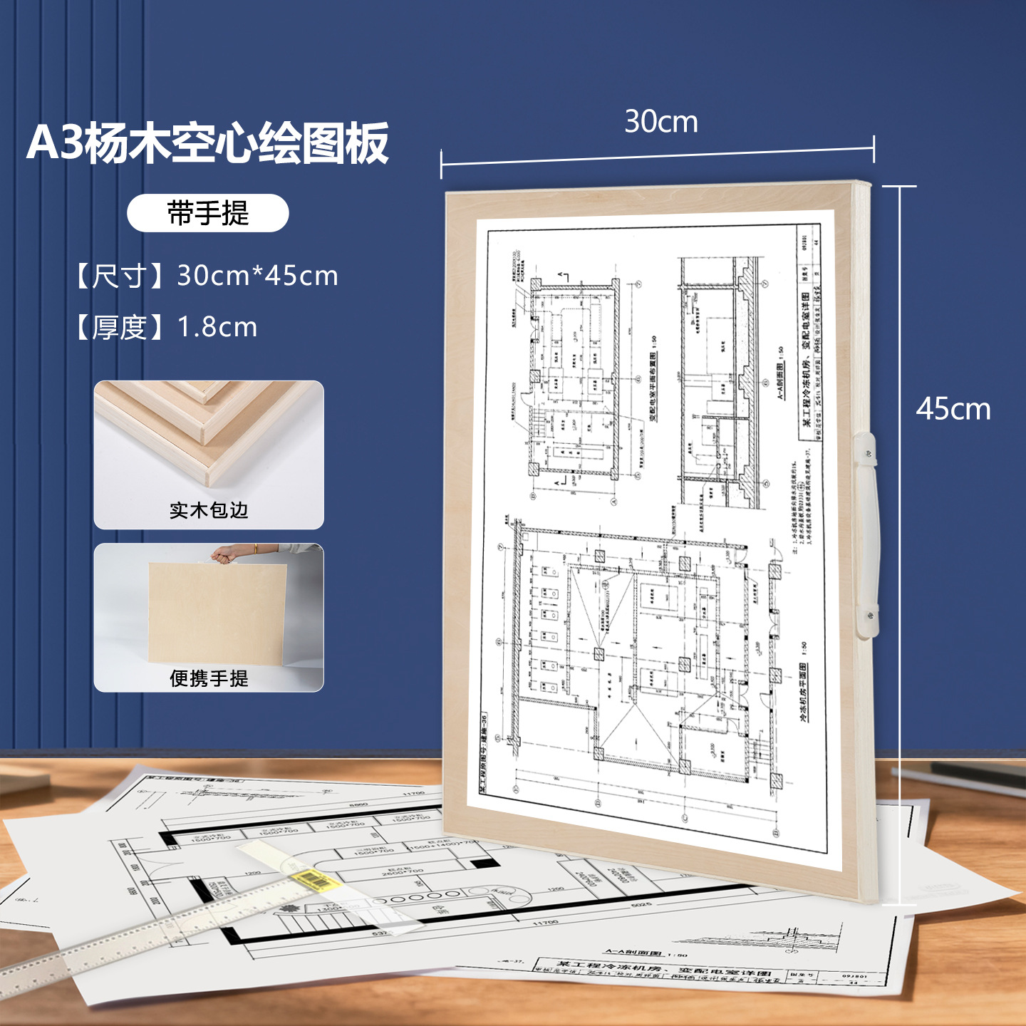 • A3 참피나무 중공 휴대용 드로잉 보드(두께 1.8cm)
