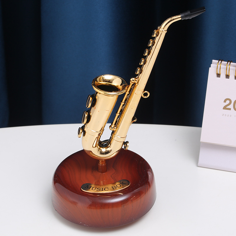 클래식 관현악 악기 옥타브 색소폰 뮤직 박스 홈 와인 캐비닛 장식품 뮤직 박스 홈 장식