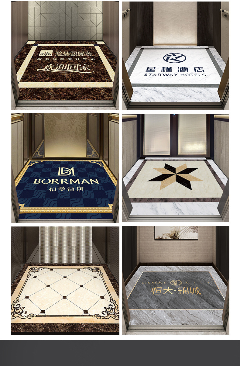 엘리베이터 자동차 바닥 PVC 엘리베이터 카펫 바닥 매트 바닥 접착제 고정 가능 로고 패턴 모조 대리석 내마모성 방수
