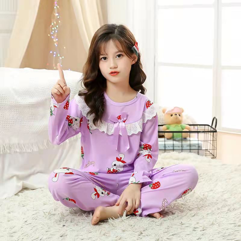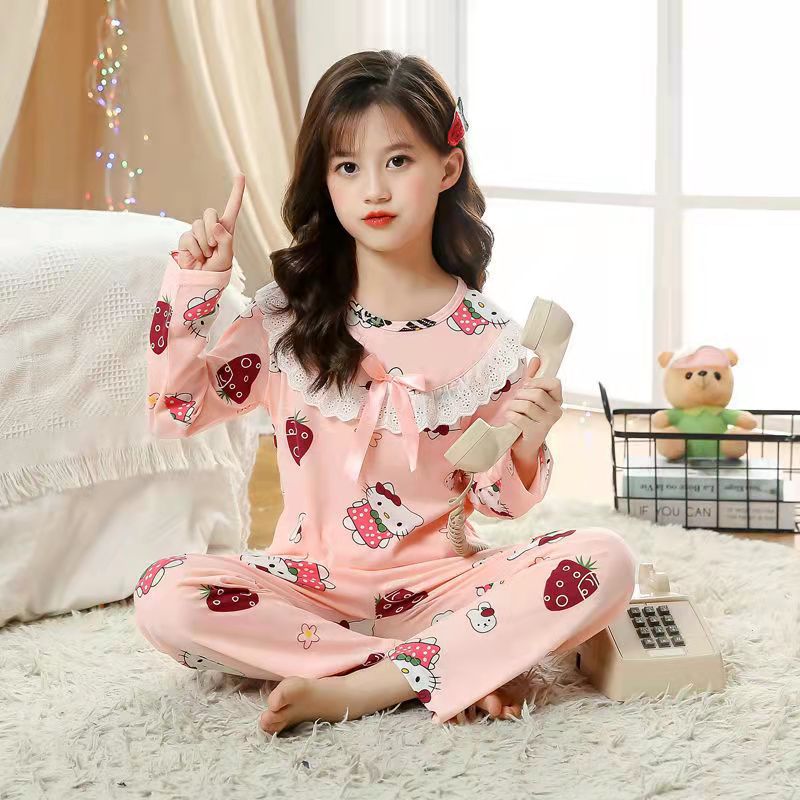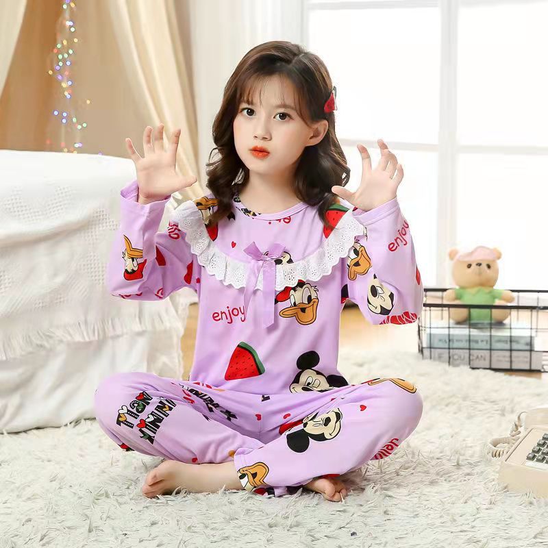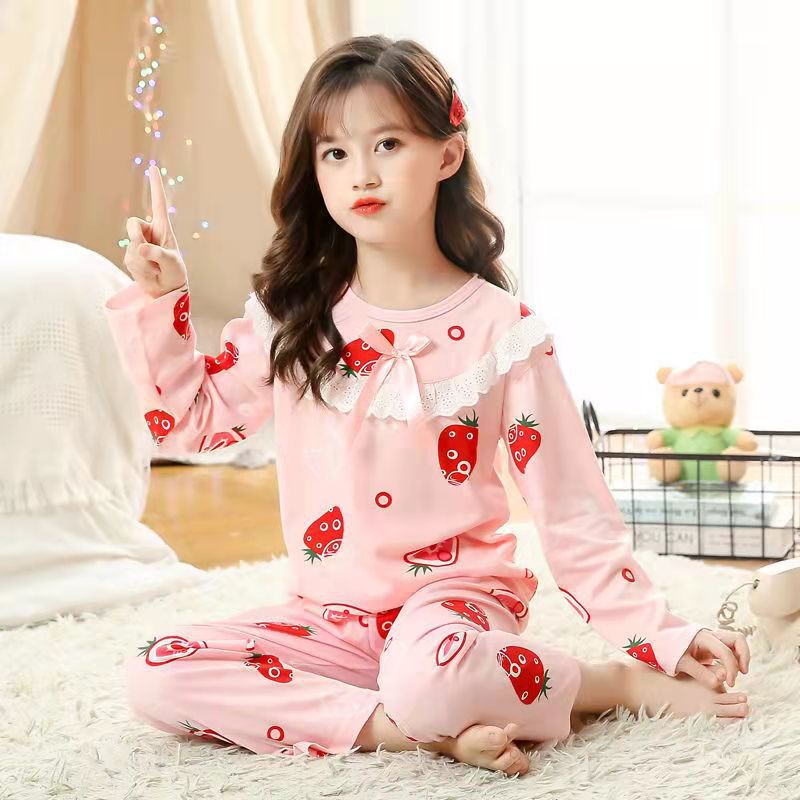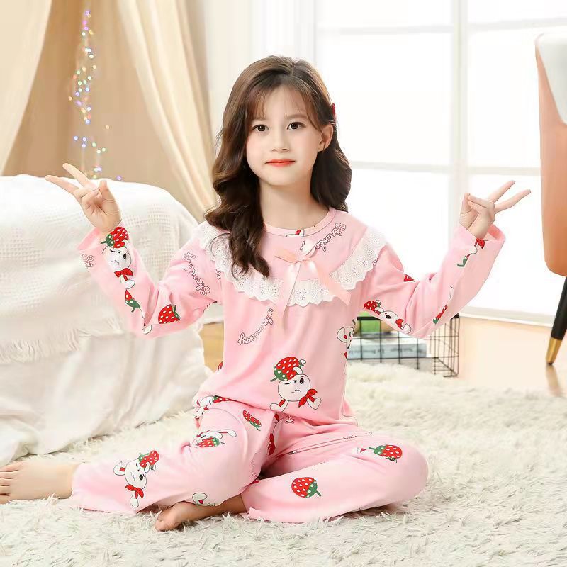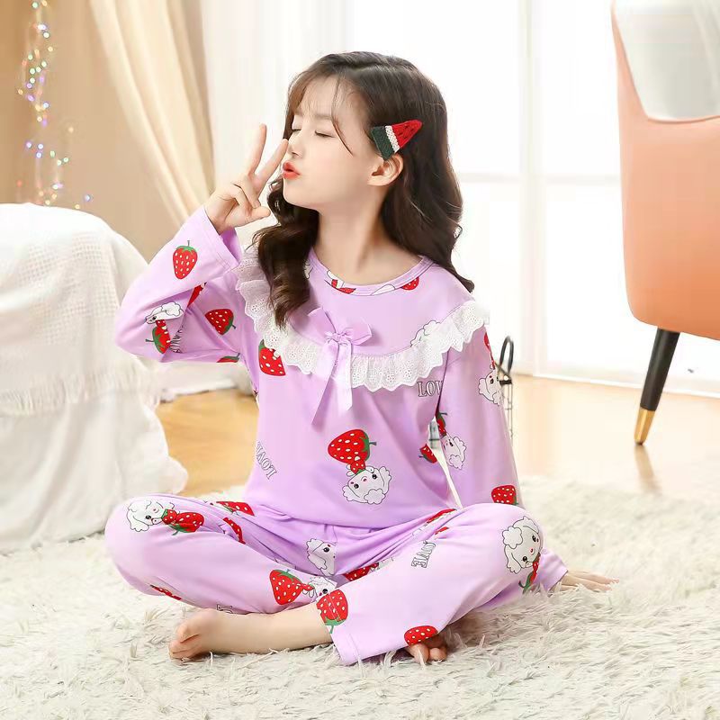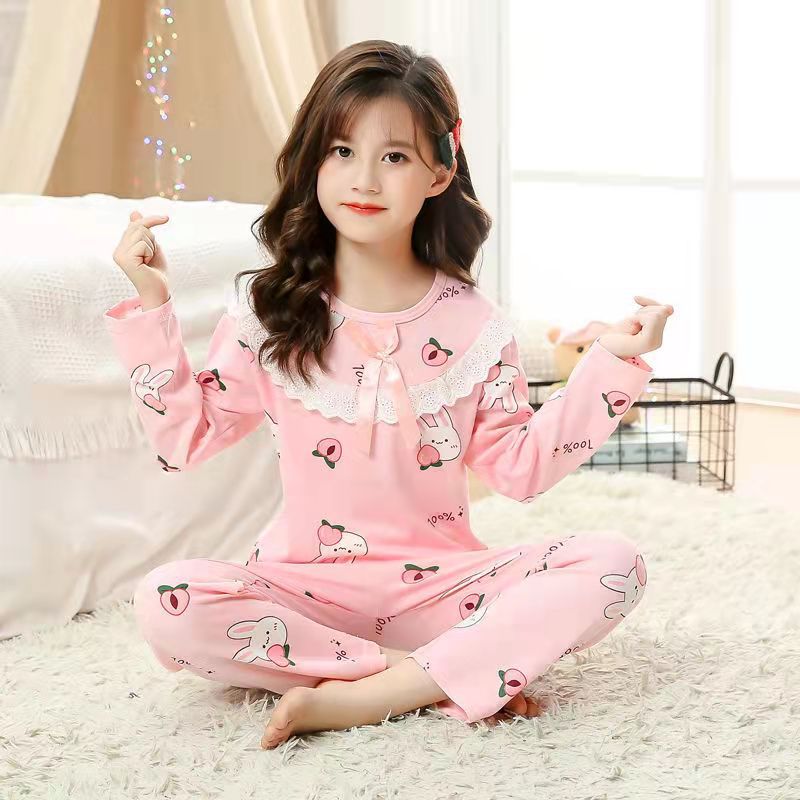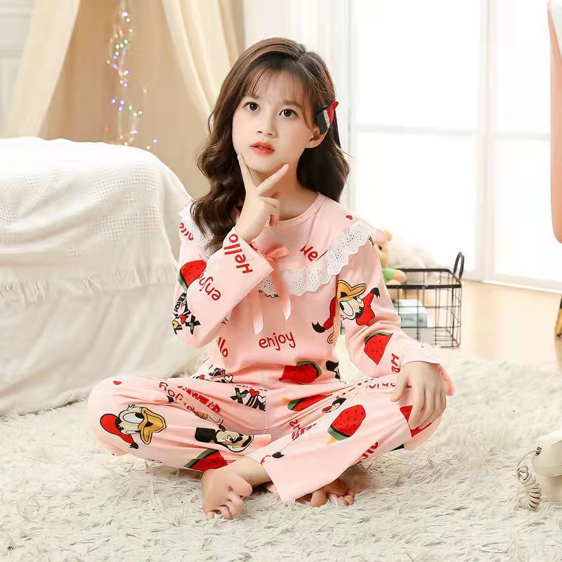 봄, 가을 얇은 아동 잠옷, 여아용 긴팔 만화 공주 세트, 중대형 어린이용 에어컨 홈웨어스토어 가기