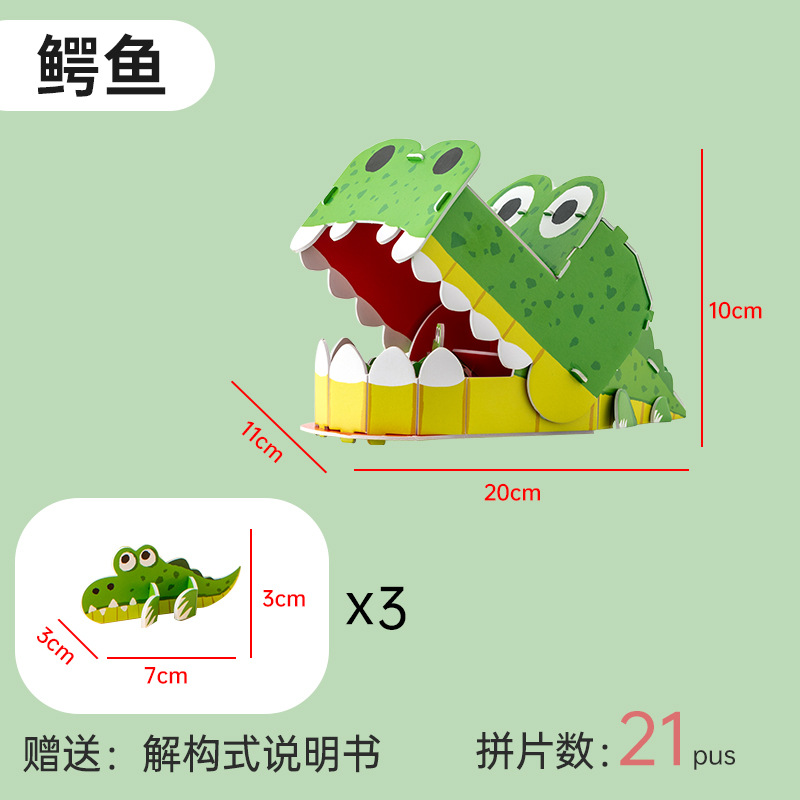 3D 입체 직소 퍼즐 동물 악어 어린이 수제 DIY 종이 조립 모델 유치원 조기 교육 교육 완구스토어 가기