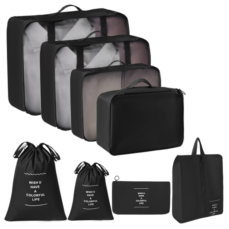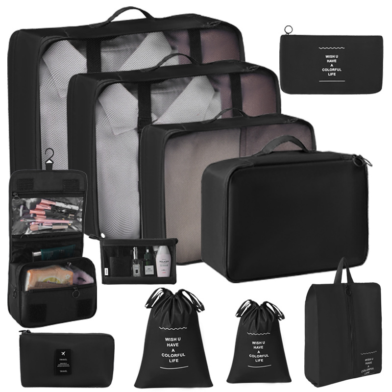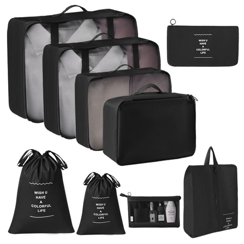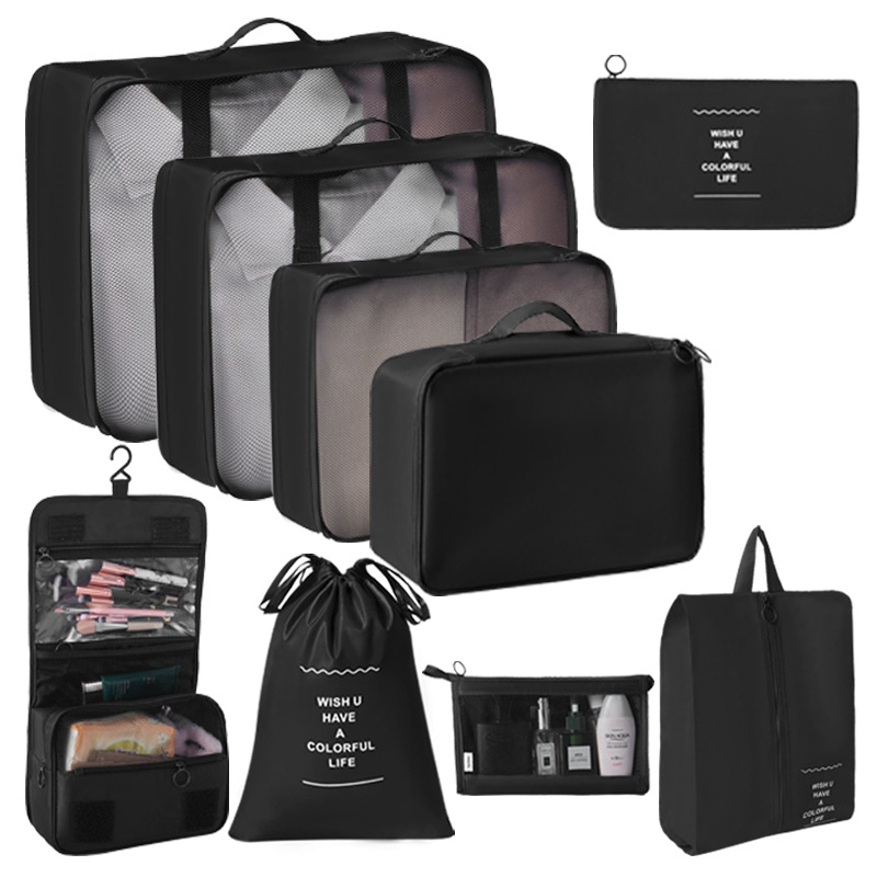 • 블랙 여행 보관 가방 9 세트 [더블 백 후크 세탁 가방]]