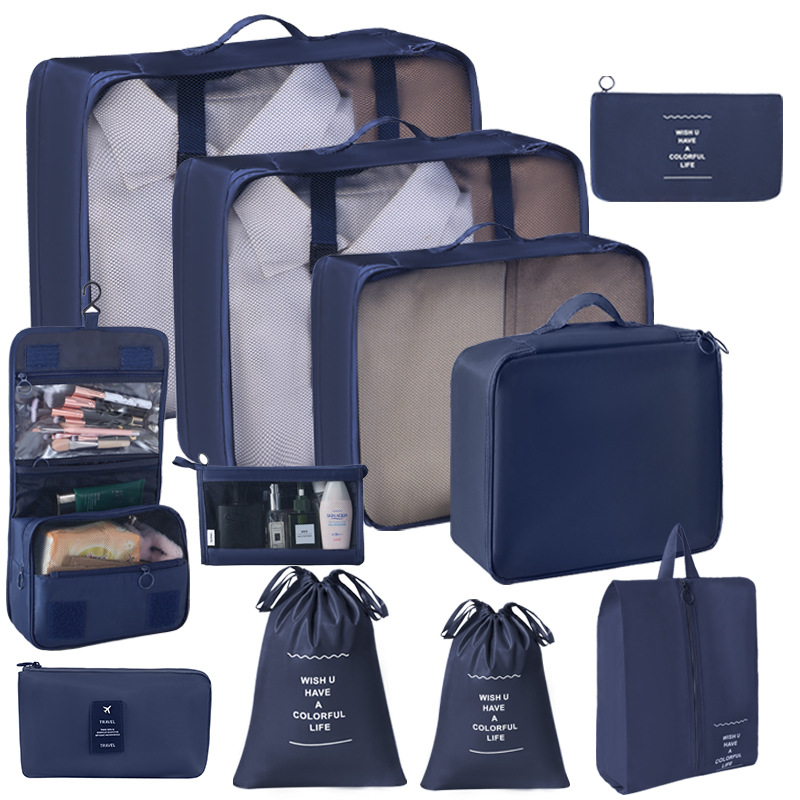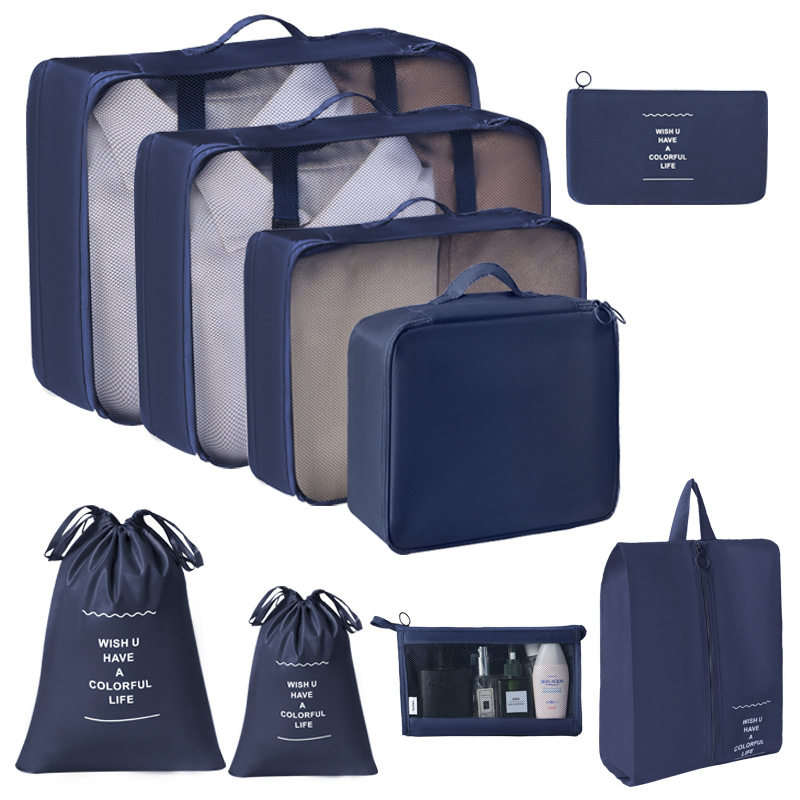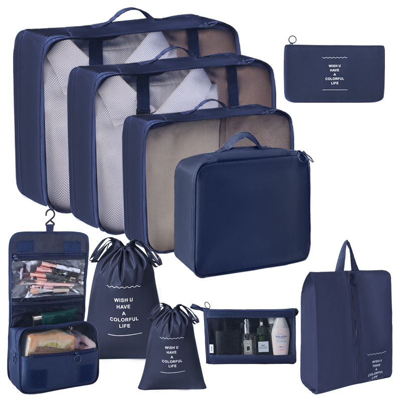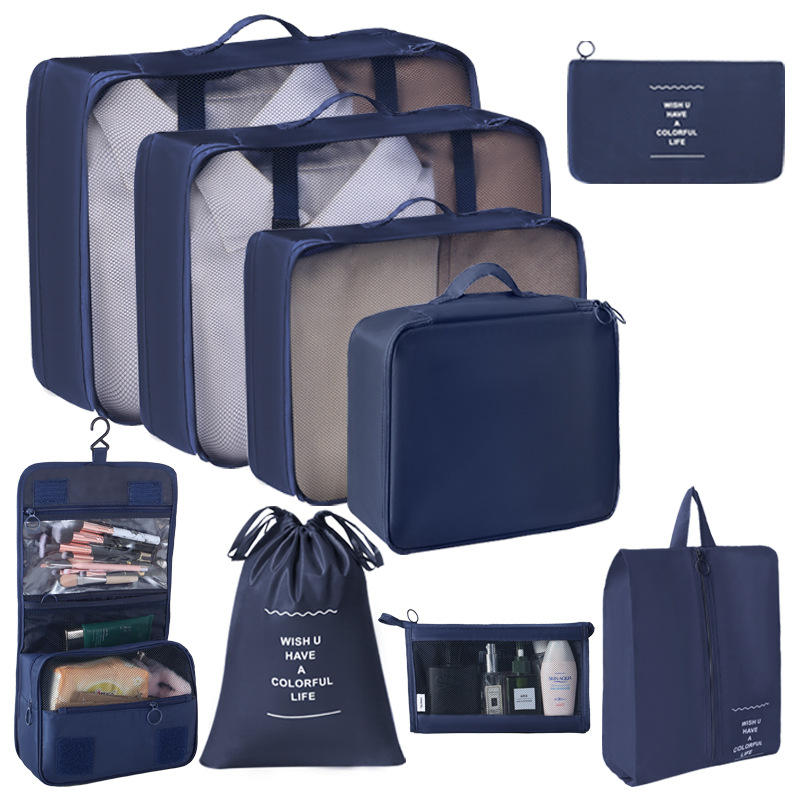 • 9 개의 네이비 여행 보관 가방 세트 [더블 백 후크 세탁 가방]]