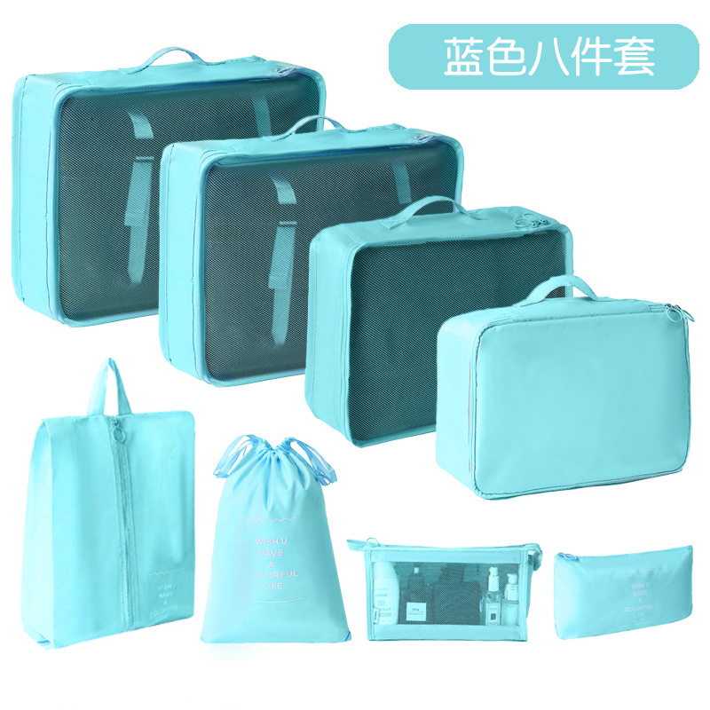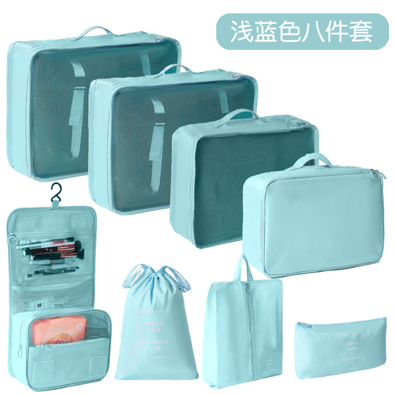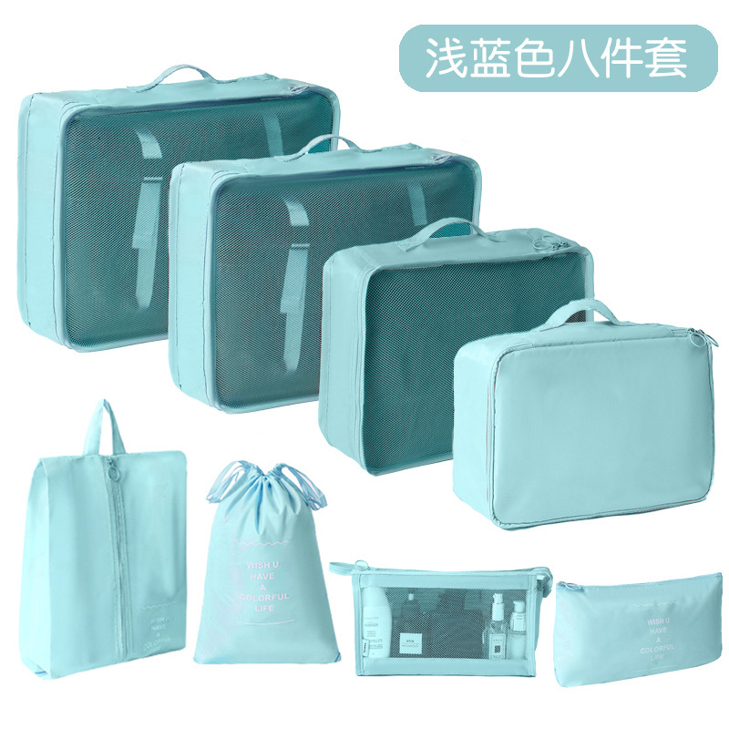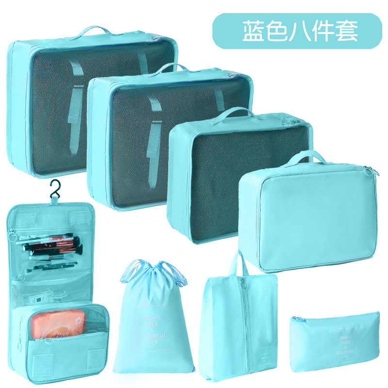 • 밝은 파란색 여행 보관 가방 8 피스 세트 [더블 번들 포켓]]