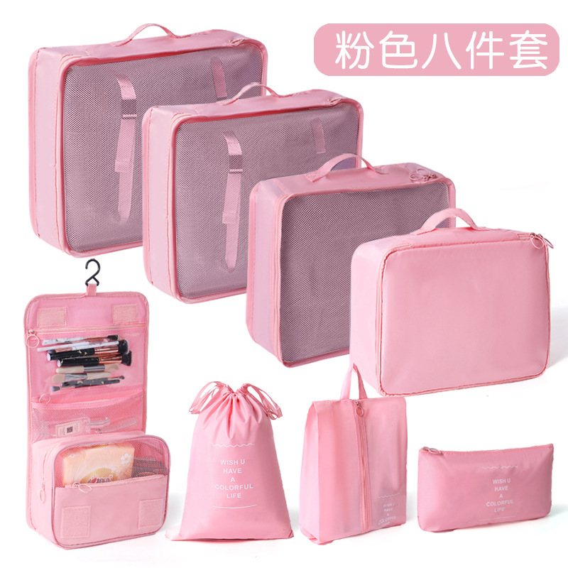 • 핑크 여행 저장 가방 8 세트 [더블 가방]]