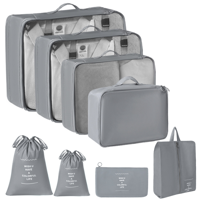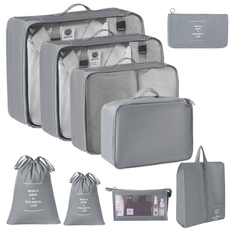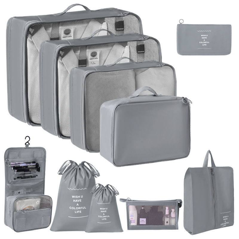• 회색 여행 보관 가방 9 개 세트 [더블 백 후크 세탁 가방]]