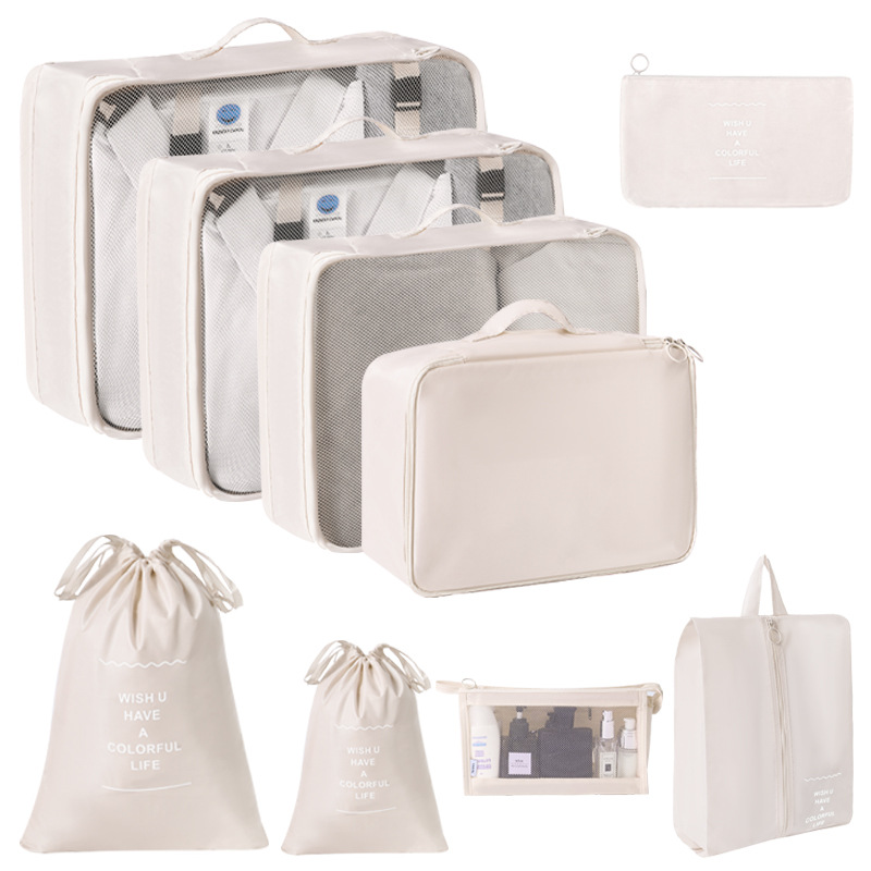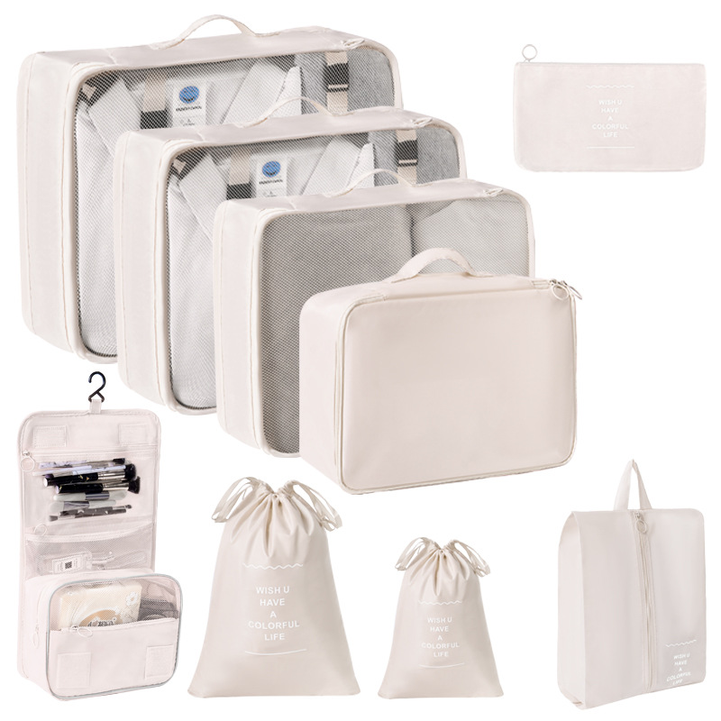 • 9 개의 베이지 여행 보관 가방 세트 [더블 백 후크 세척 가방]]