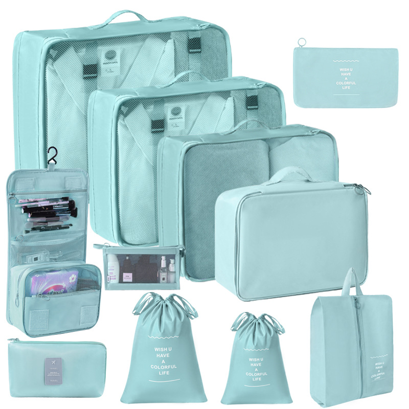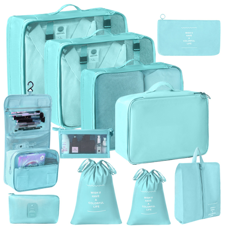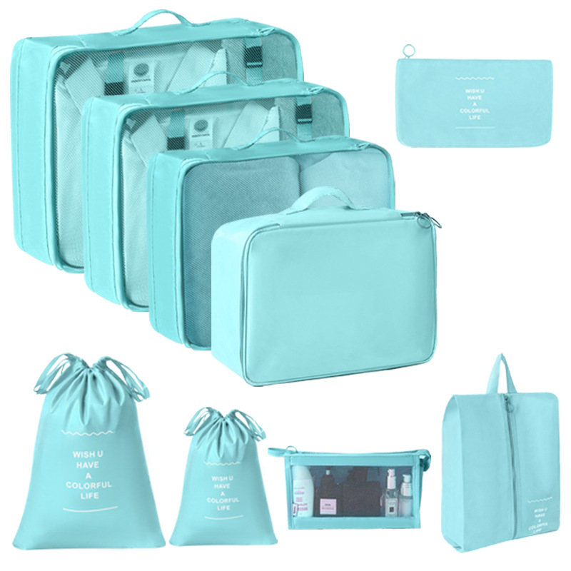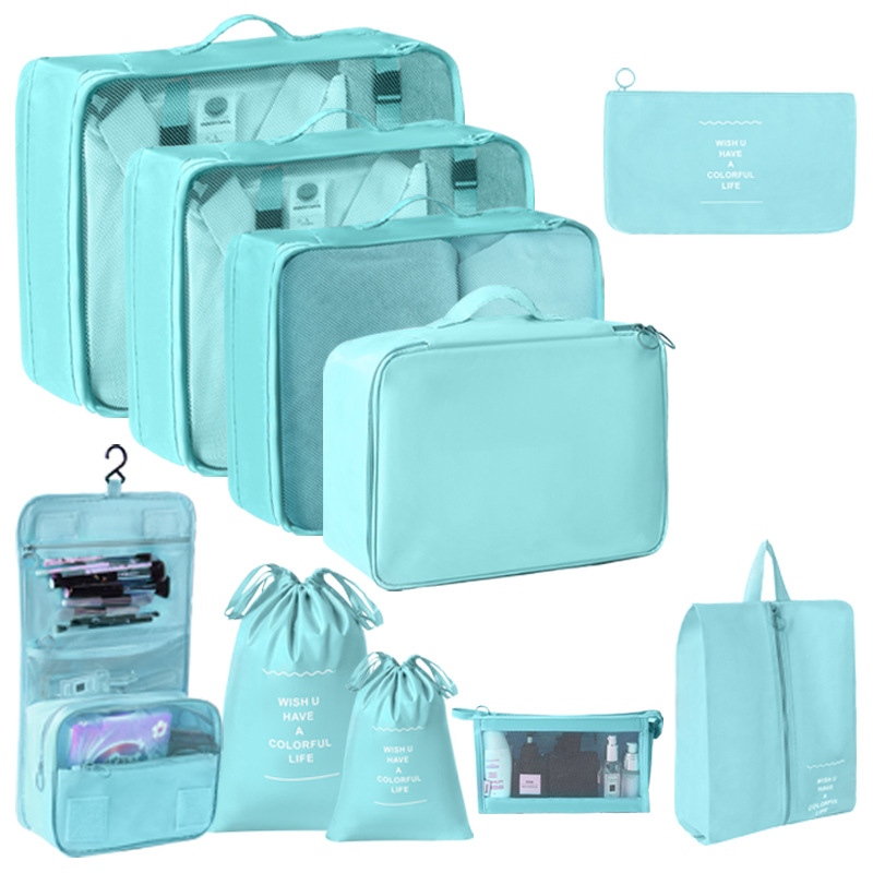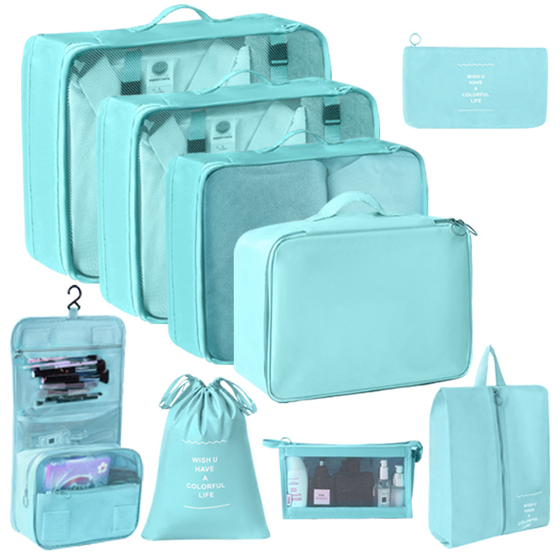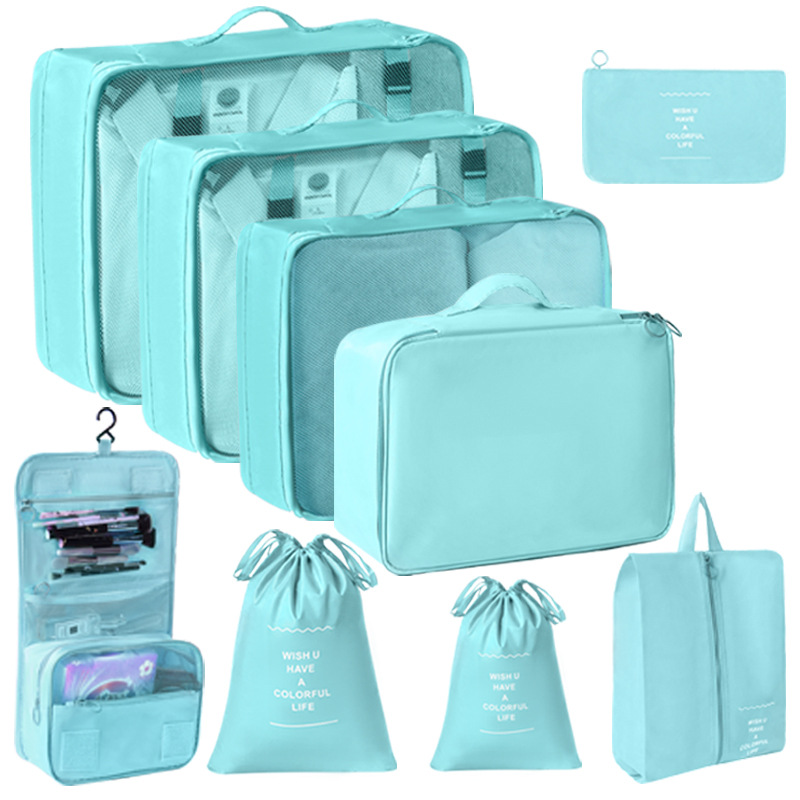 • 9 개의 밝은 파란색 여행 보관 가방 세트 [더블 백 후크 세탁 가방]]