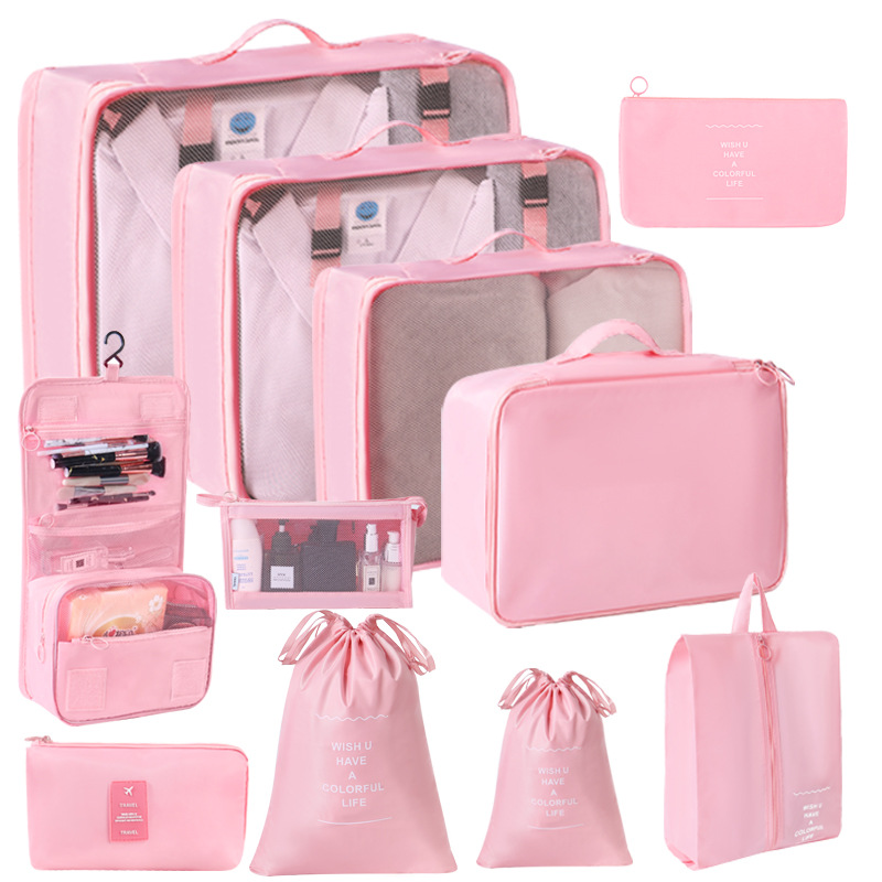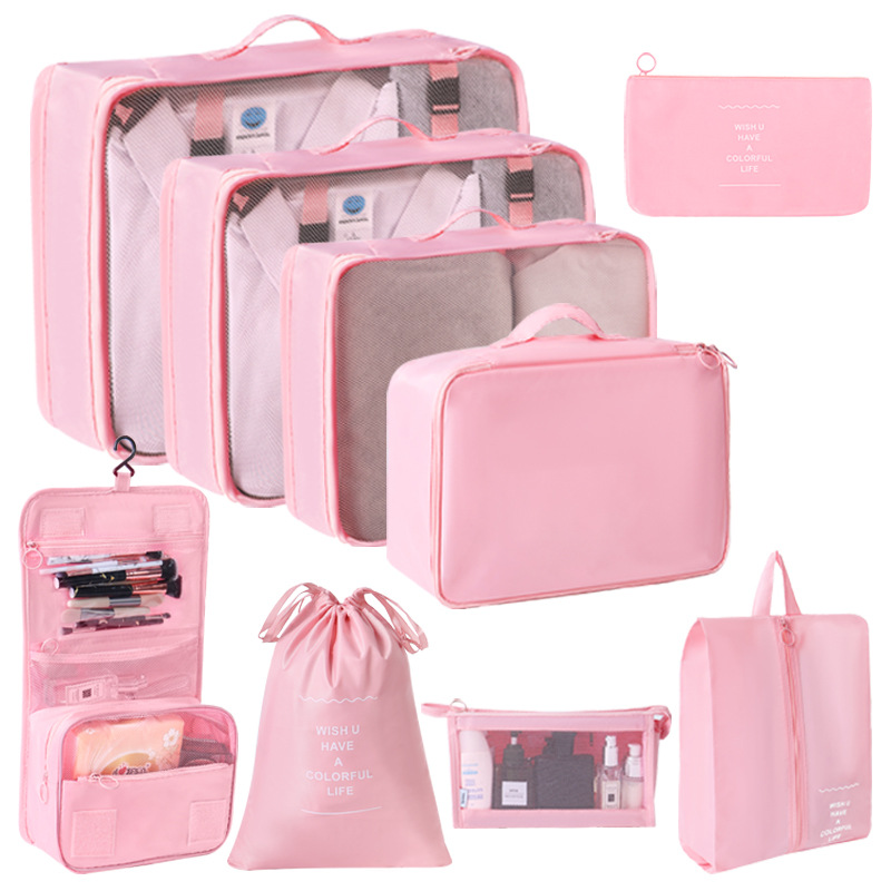 • 9 개의 핑크 여행 보관 가방 세트 [더블 백 후크 세탁 가방]]