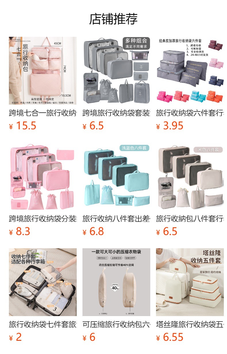 여행 가방 여행 수하물 의류 속옷 저장 가방 도매 여행 보관 가방 7 조각 세트 의류스토어 가기