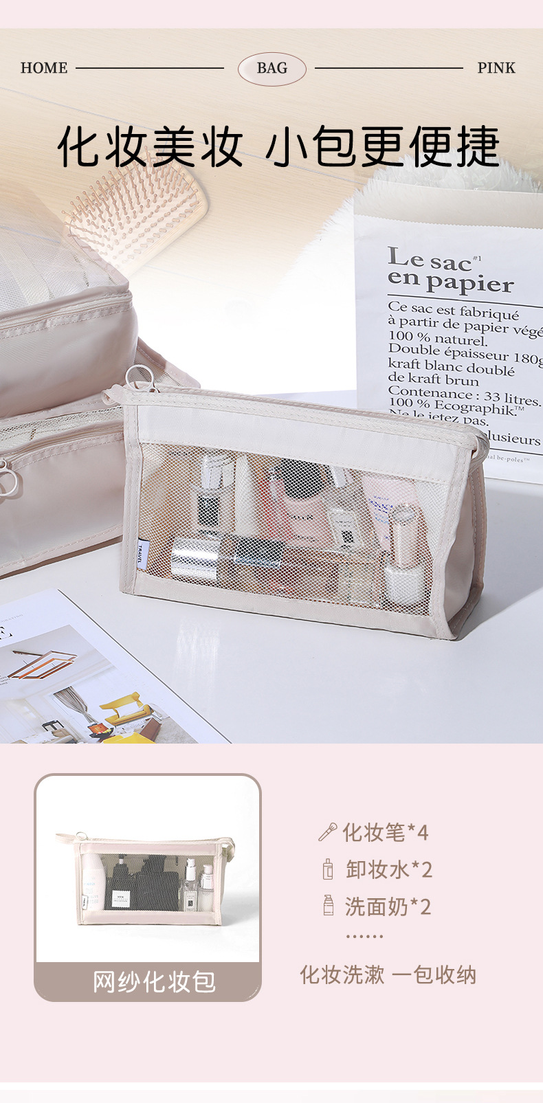 • 베이지 여행 보관 가방 9 세트 [더블 포켓 화장품 가방]]